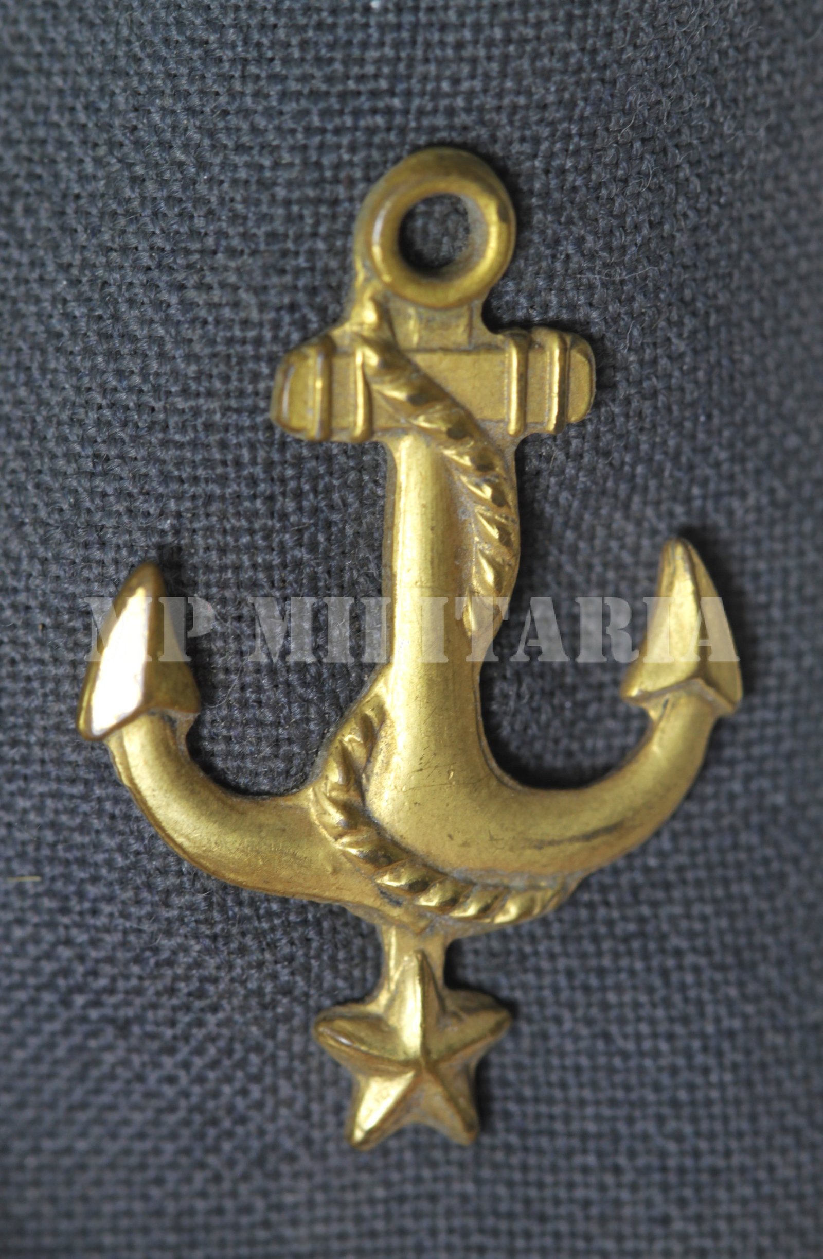 Em tecido e insígnia de metal;