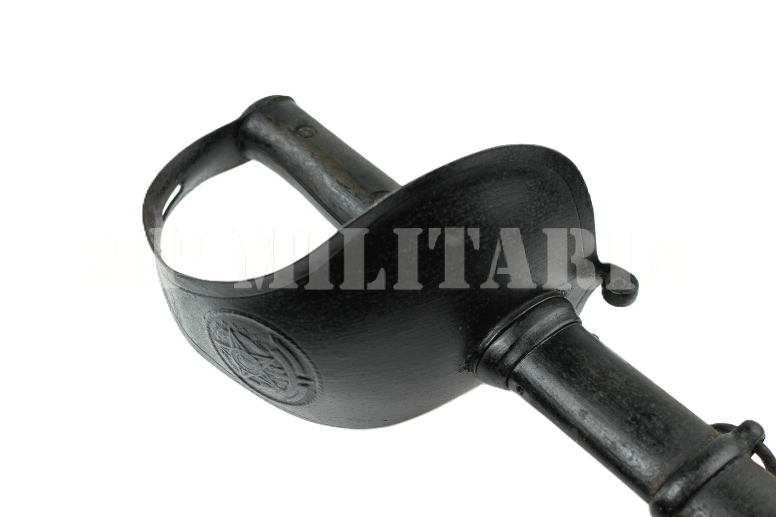 Antiga espada / sabre de Cavalaria do Exército Brasileiro, usada também por unidades de cavalaria das Polícias Militares. A guarda ostenta o Brasão de Armas, com a antiga inscrição “Estados Unidos do Brasil”. Produzida pela Abramo Eberle & Companhia com lâmina espessa, completa;