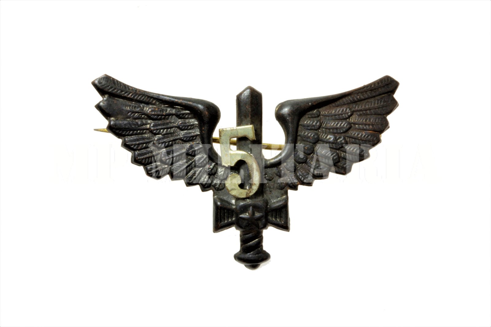 Antiga insígnia de cobertura do 5º Zona Aérea criada em 5 de março de 1942 hoje denominada V COMAR (5º Comando Aéreo) da Força Aérea Brasileira. Tem a forma do sabre alado com o número 5;