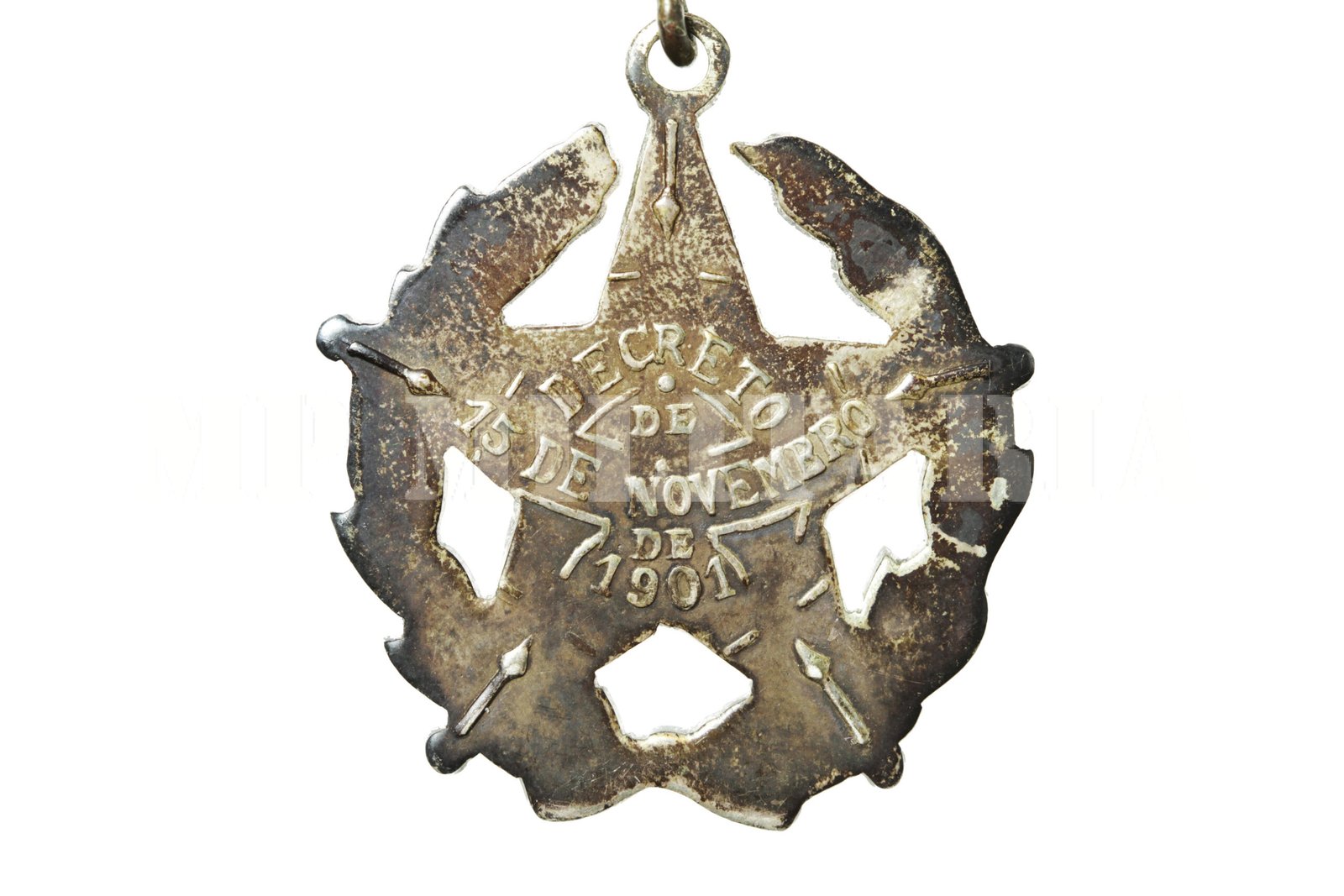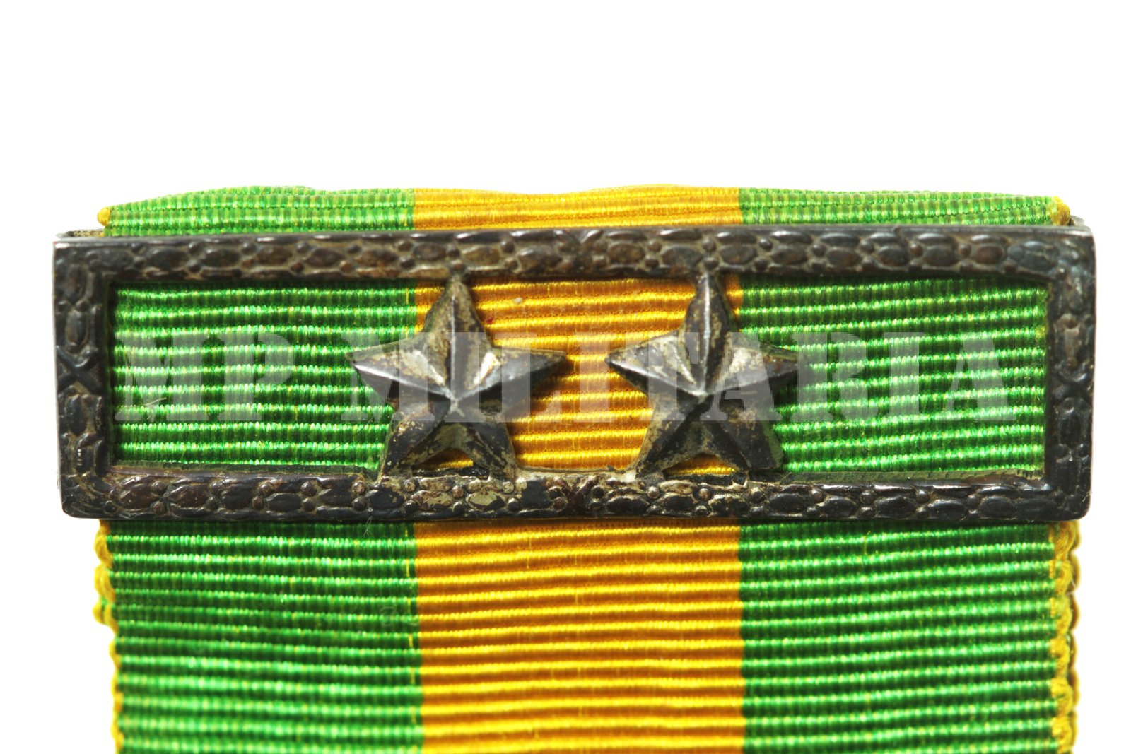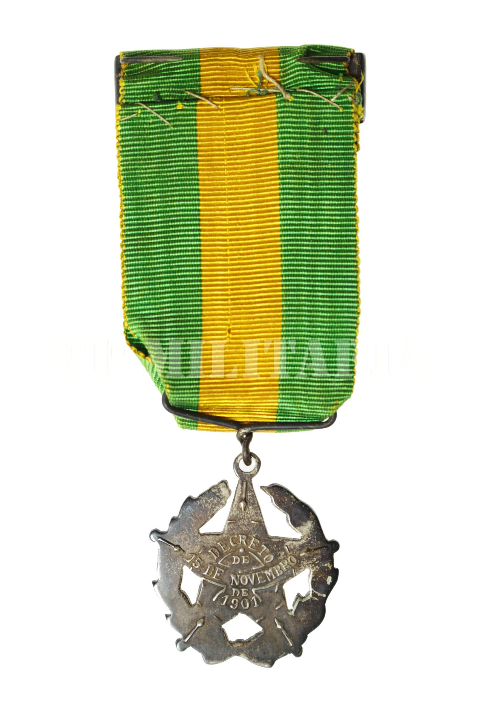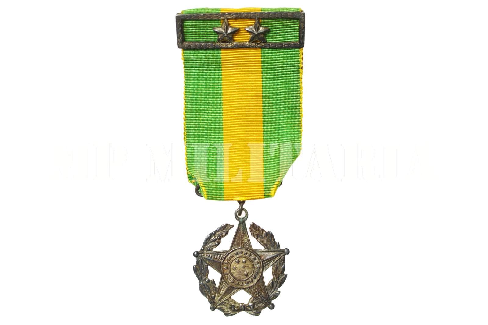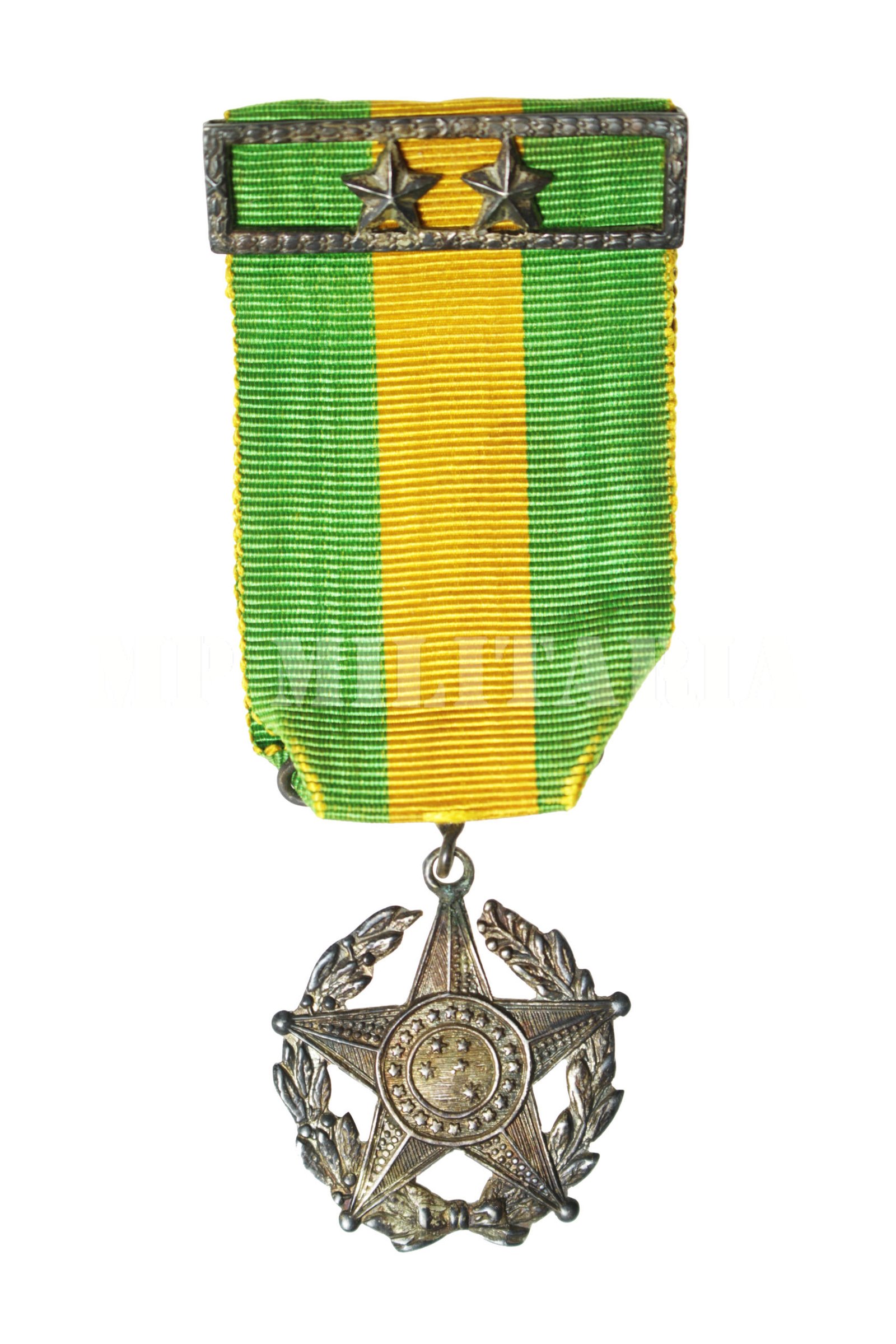 Medalha Militar modulo menor, de 20 anos de Bons Serviços, com 2 estrelas (em prata), esse modelo foi usado até 1956. Criada pelo decreto nº 4328 de 15 de novembro de 1901, concedida a militares das três Forças Exército, Marinha e Aeronáutica;
