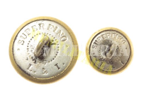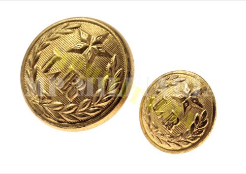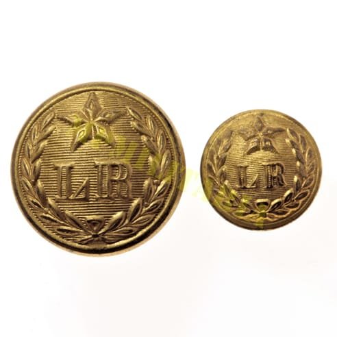 Raro conjunto de botões Estrada de Ferro Leopoldina Railway (1874 – 1975), foi a primeira estrada de ferro de Minas Gerais, apresenta o monograma “LR”. Conjunto composto por um botão grande e outro pequeno;