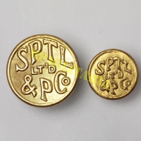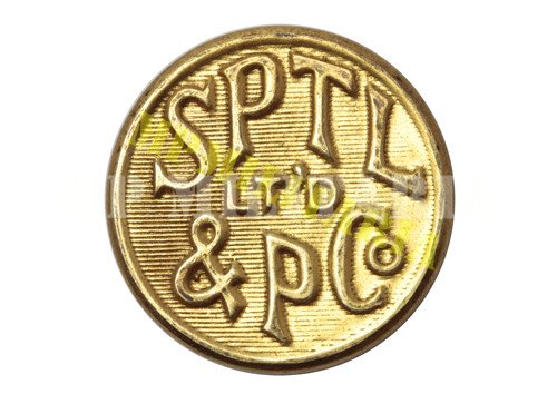 Raro conjunto de botões do serviço de transporte de bondes da São Paulo Tramway, Light and Power Company, conhecida como São Paulo Light atuou nas atividades de transporte público por bondes, geração e distribuição de energia elétrica. Apresenta o monograma “SPTL Lt’d & PCo”. Conjunto composto por um botão grande e outro pequeno.