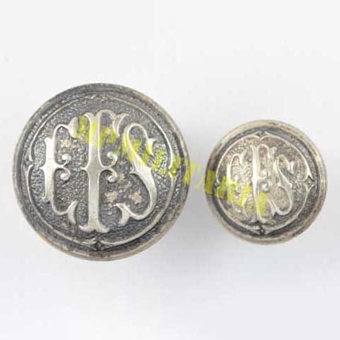 Raro conjunto de botões Estrada de Ferro Sorocabana (1875 – 1971) prateado, apresenta o monograma “EFS”. Conjunto composto por um botão grande e outro pequeno.