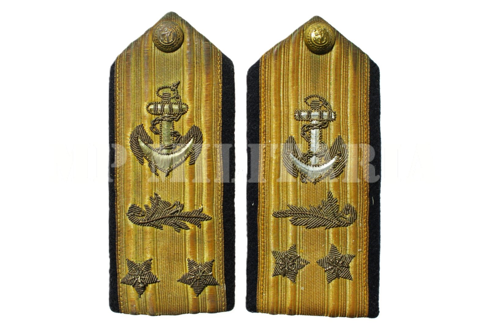 Antigo par de platinas de Contra Almirante intendente da Marinha Brasileira, fino bordado com fios metálicos;