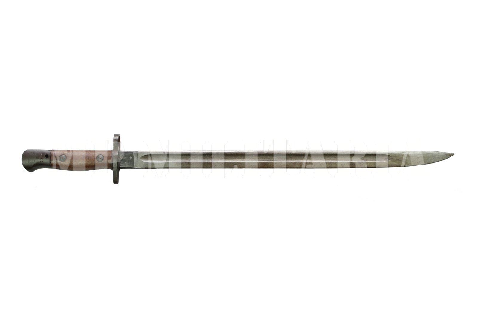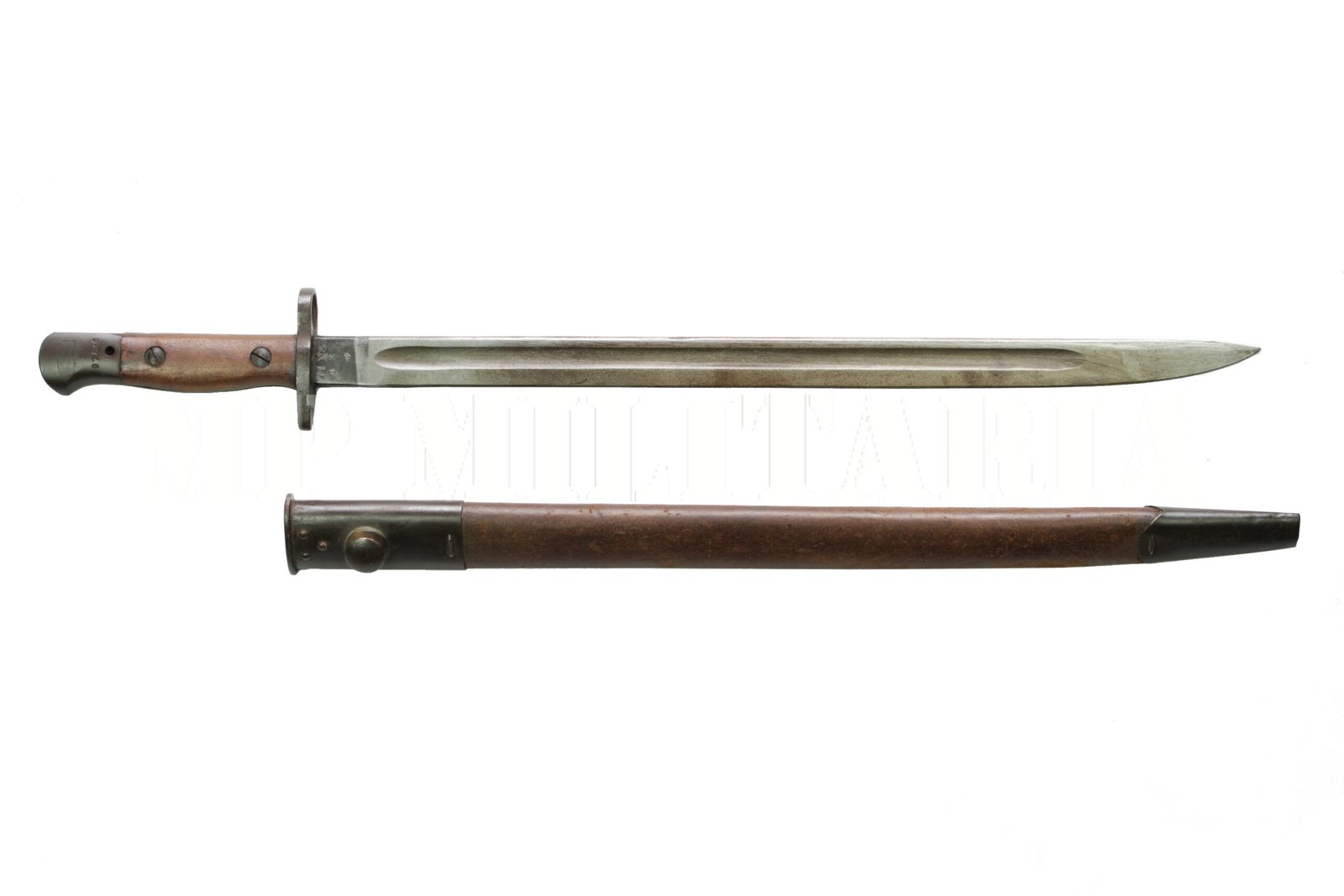 Baioneta Britânica modelo 1907, do rifle Lee-Enfield, da II Guerra, fabricada em 1942 pela Wilkinson Sword Co.. A Wilkinson foi a única fabricante deste modelo (P1907) durante a Segunda Guerra;