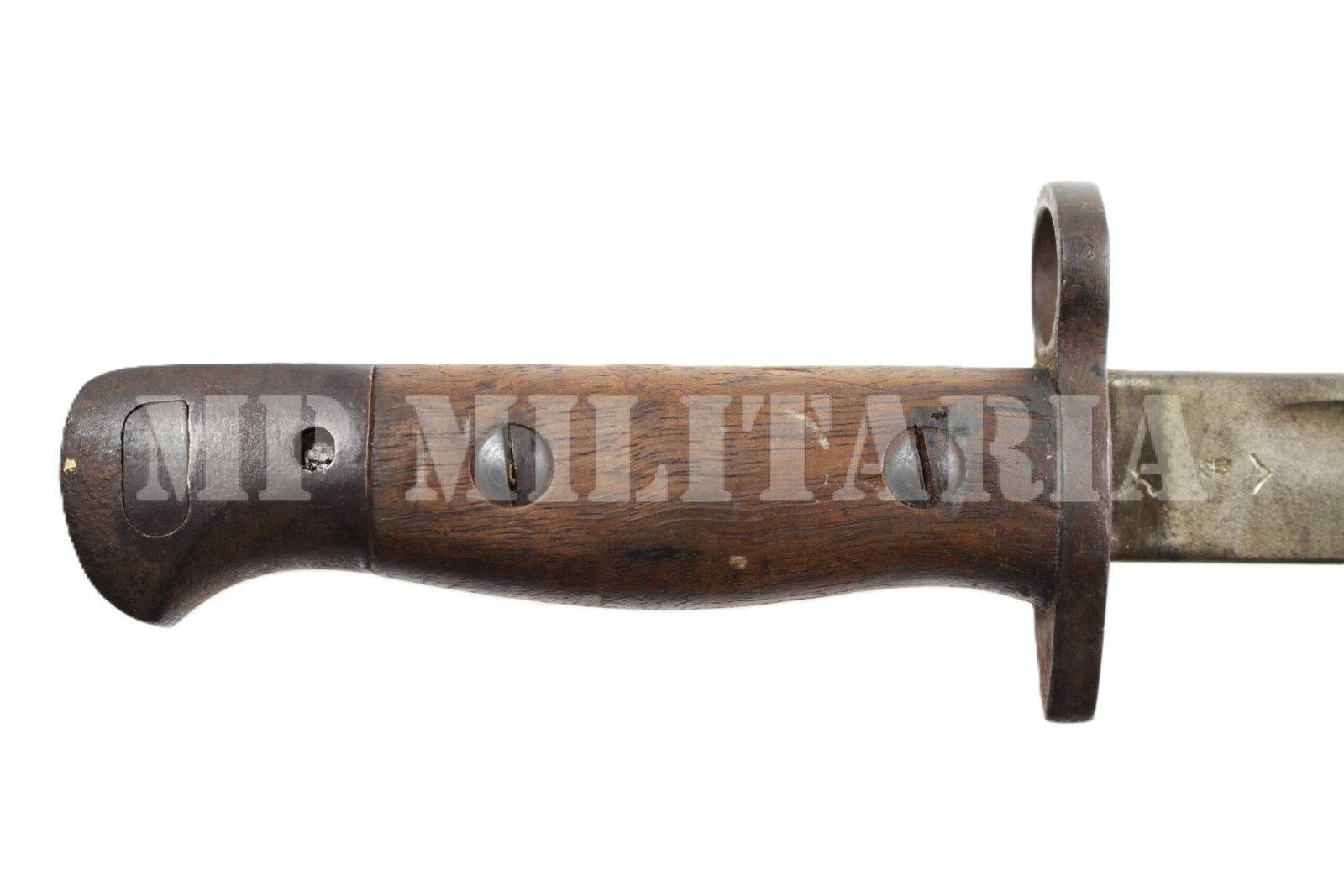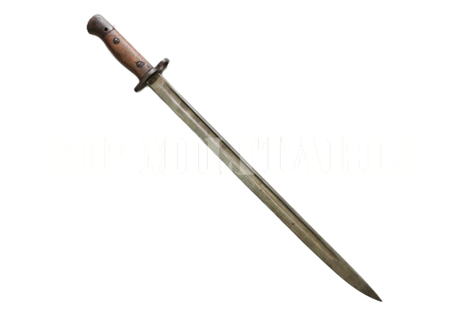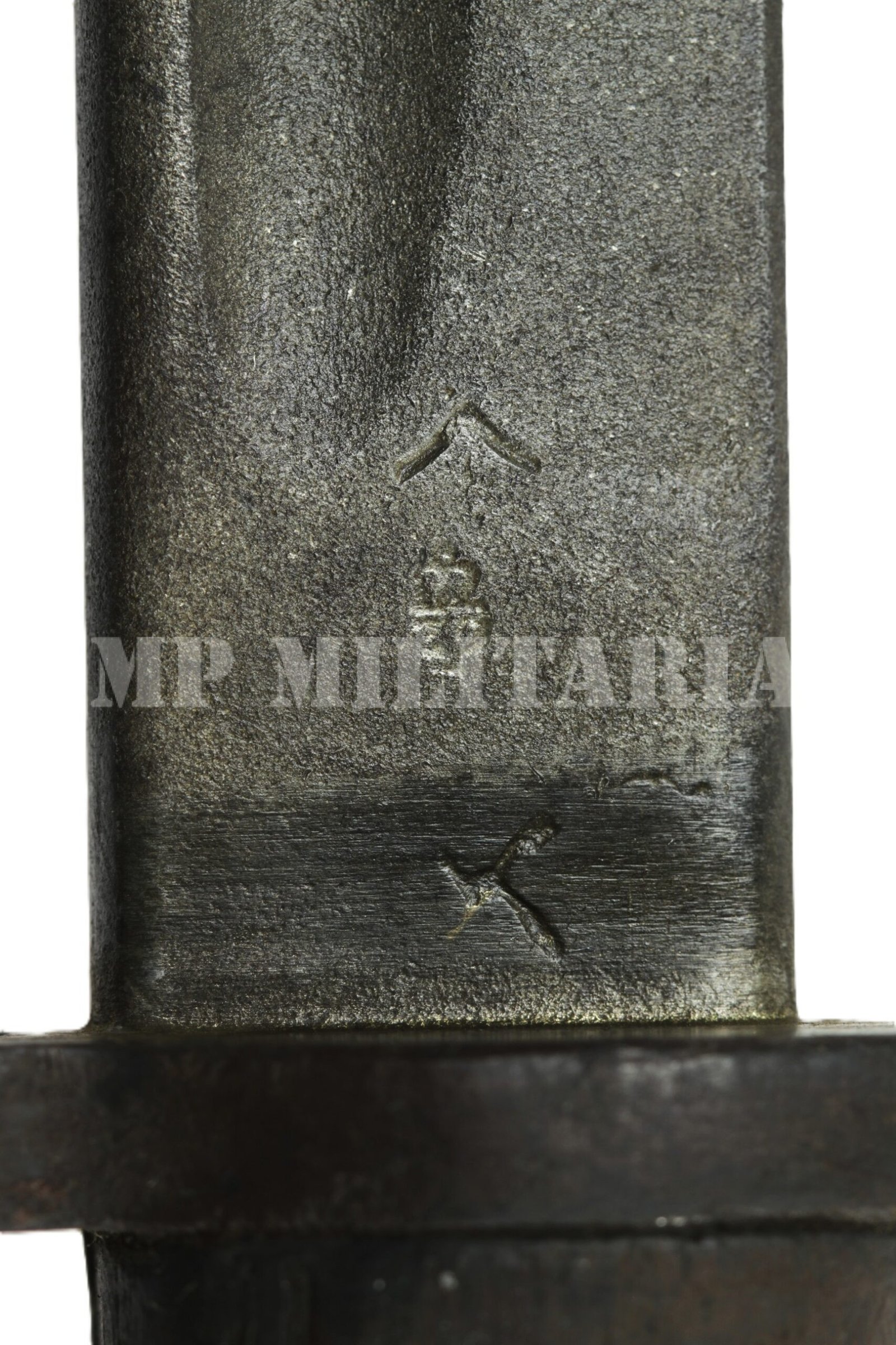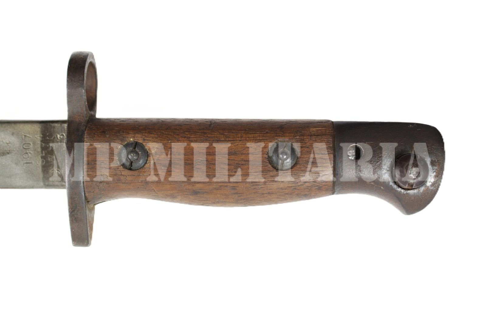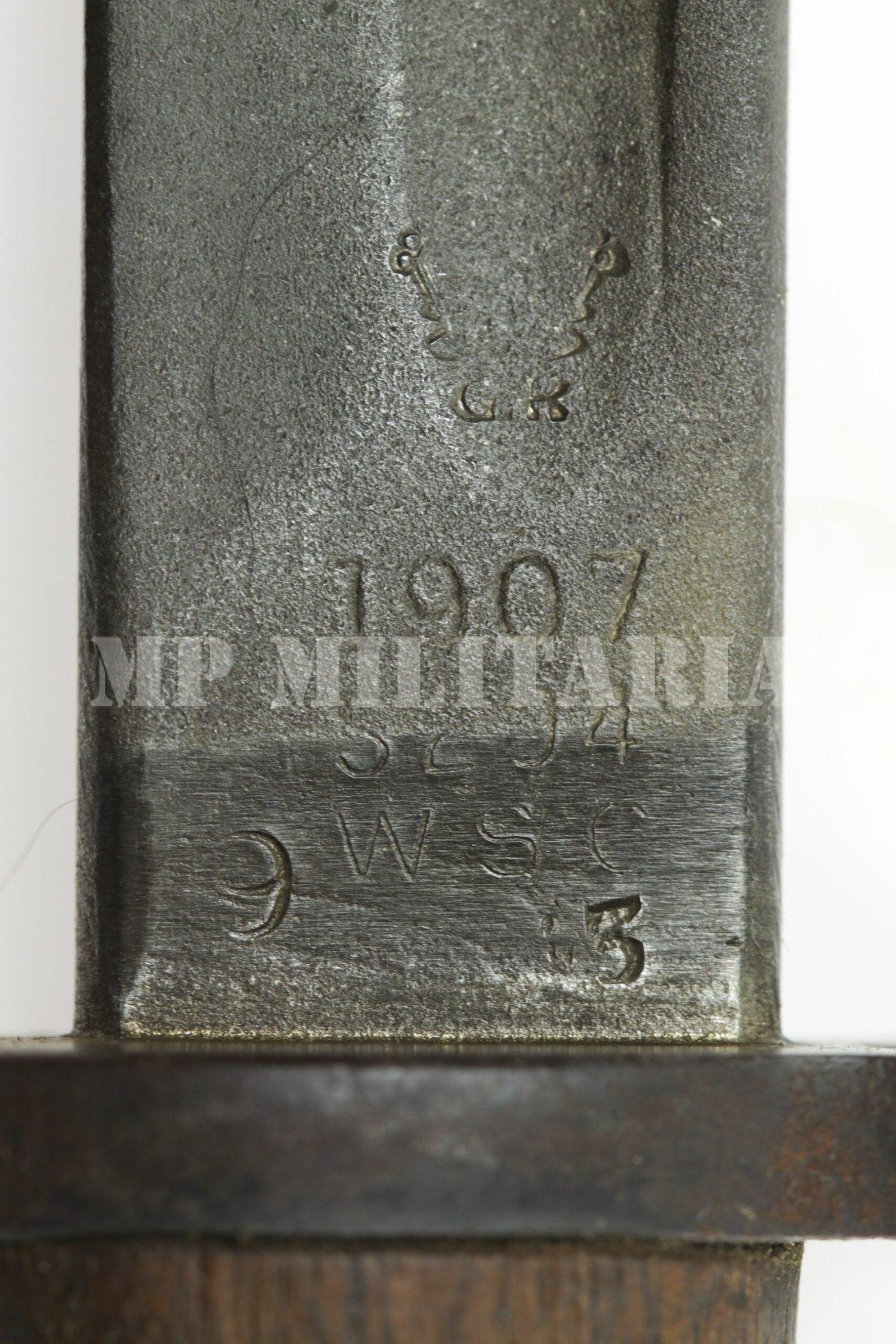 Baioneta Britânica modelo 1907, do rifle Short Magazine Lee-Enfield (SMLE), foi a baioneta padrão usada pelos britânicos na I Guerra Mundial, com punções no ricasso, como marcas de provas e fabricante;