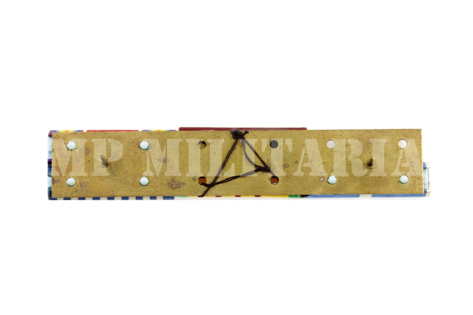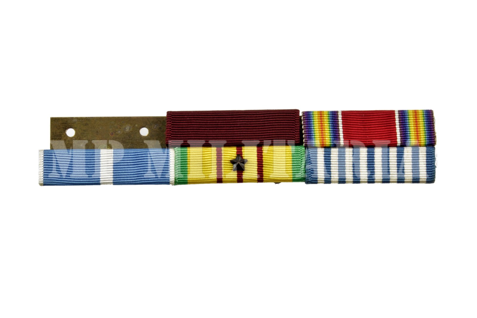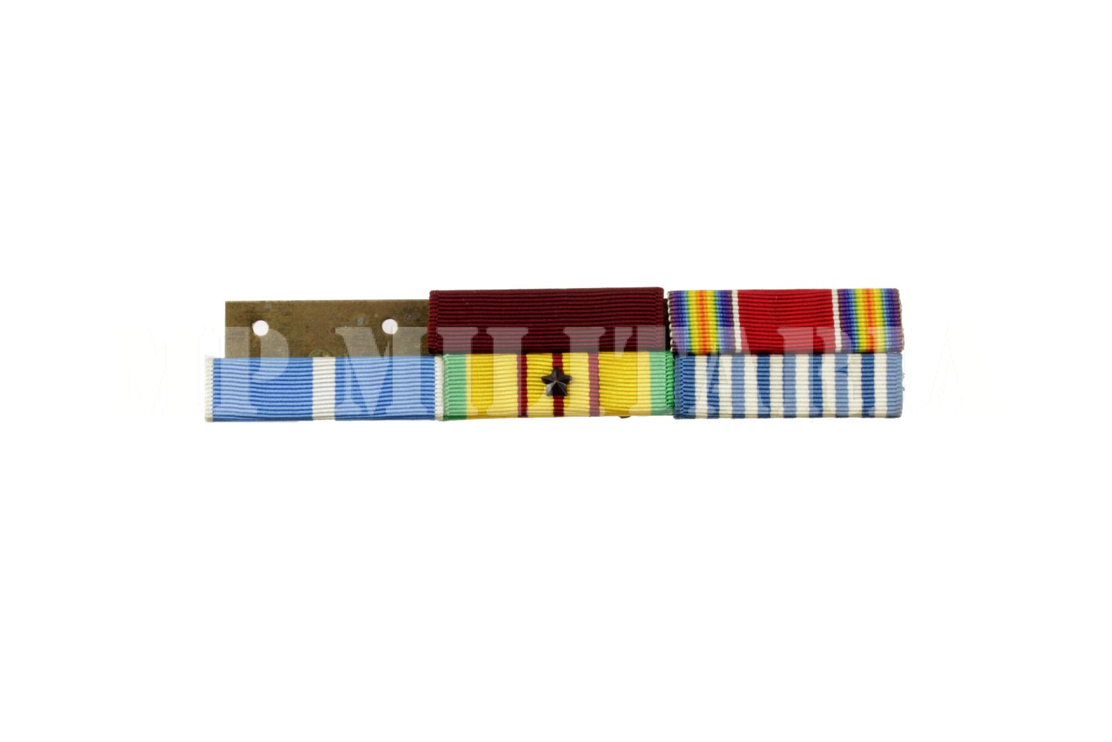 Barrete com cinco (5) barretas de medalhas de um veterano da Marinha dos Estados Unidos – US NAVY que combateu em três guerras II Guerra Mundial, Guerra da Coreia e Guerra do Vietnã;