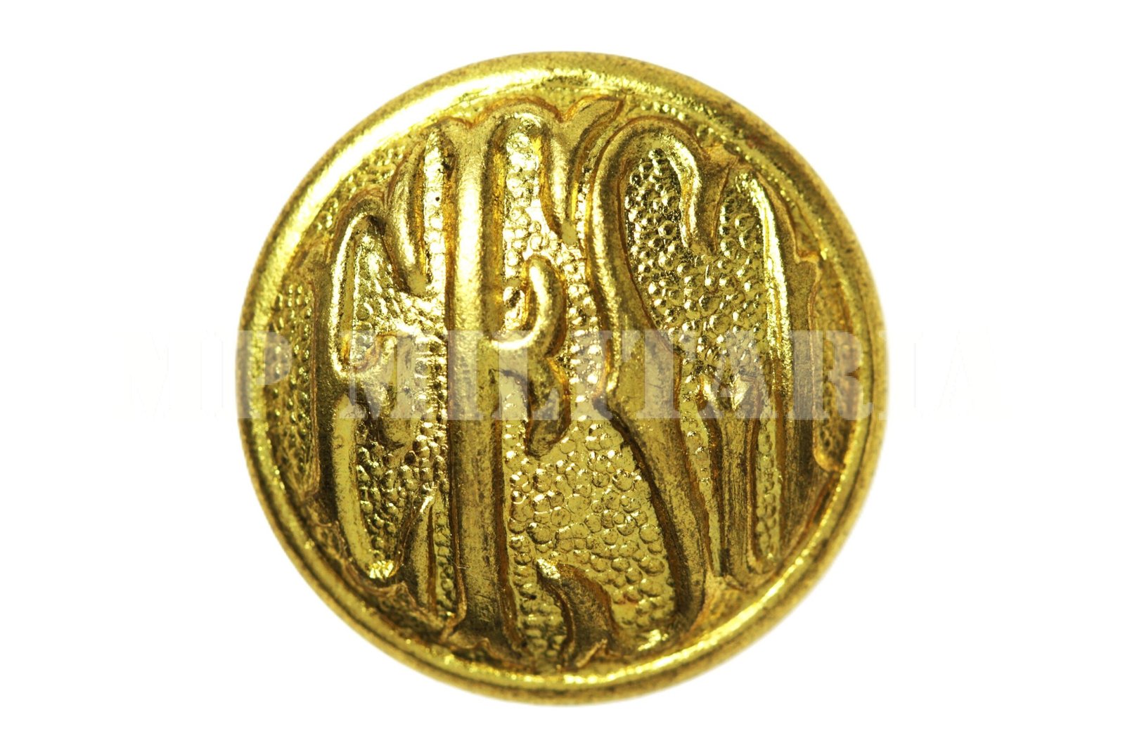 Botão da Estrada de Ferro Santos-Jundiaí dos anos 1940, a EFSJ surgiu após o encerramento da Estrada de Ferro São Paulo Railway (1867 – 1946), dourados;
