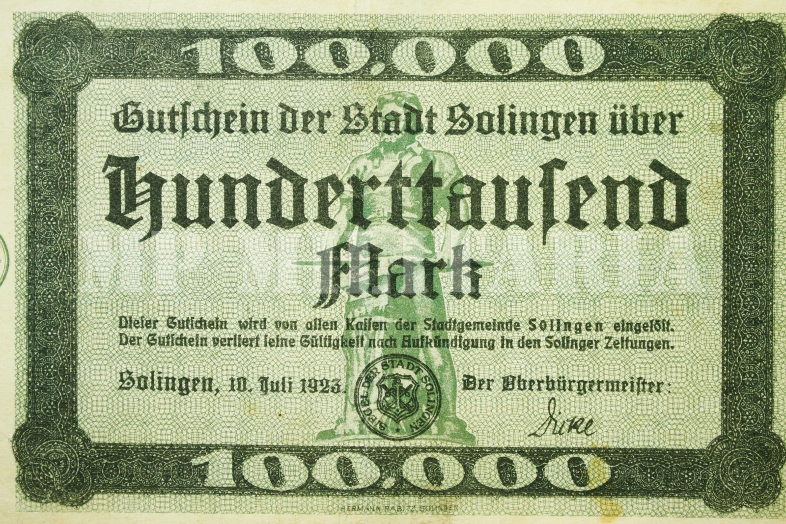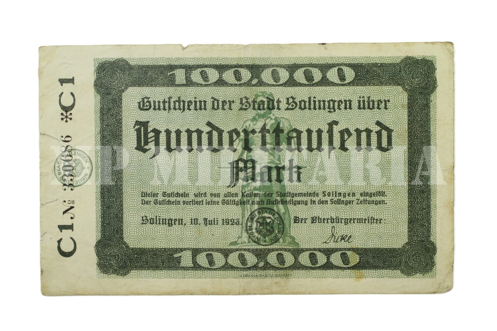 CÉDULA DE 100.000 DE MARCOS • SOLINGEN – 1923