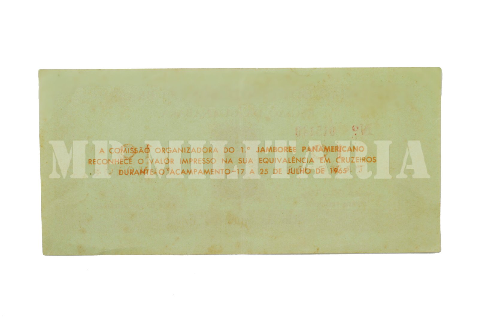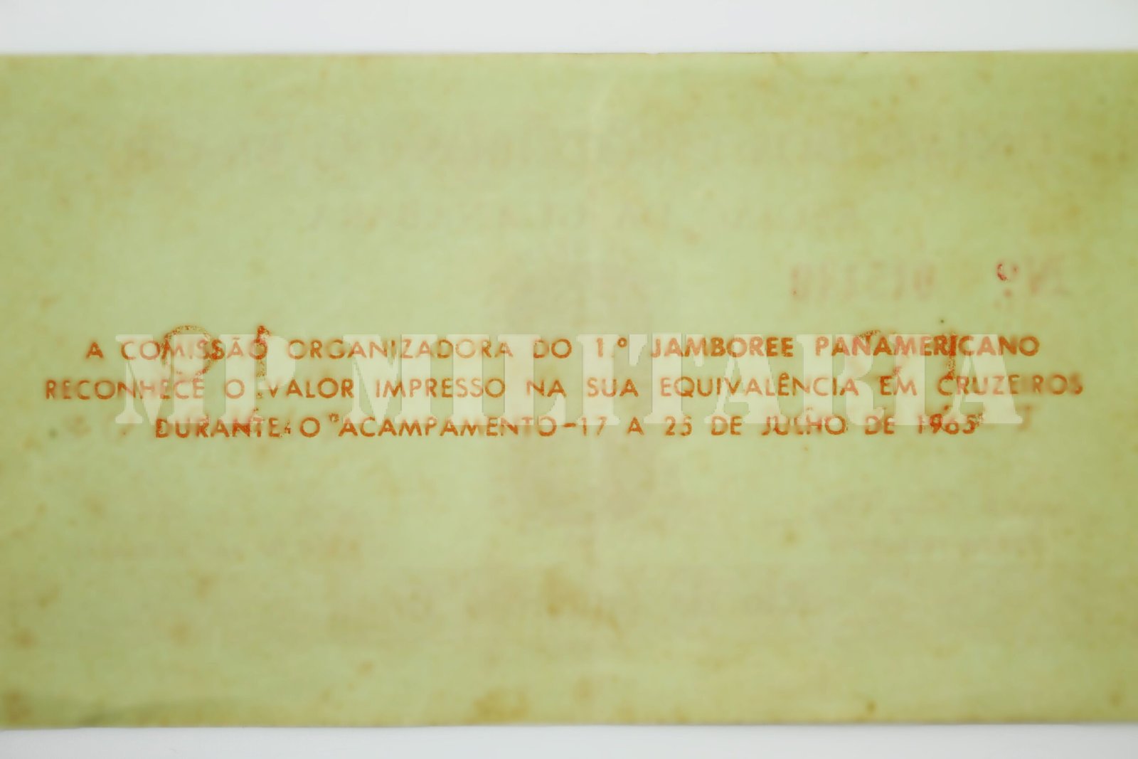 Cédula dos Escoteiros do Brasil, Região da Guanabara, no valor de 10 Tamoios, impresso pela comissão organizadora do 1º Jamboree Panamericano em 1965;