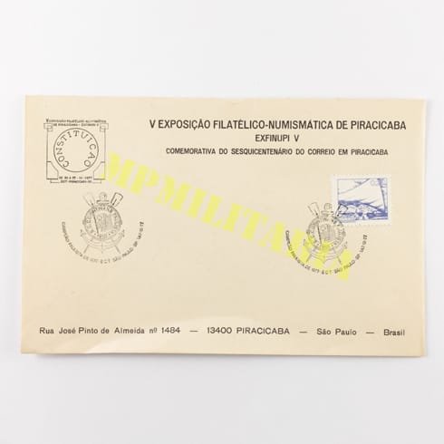 Envelope com a Chancela Filatélica (carimbo) do Corinthians Campeão Paulista de 1977 – Envelope da V Exposição Filatélica Numismática de Piracicaba, selo e carimbo filatélico com o brasão do Esporte Clube Corinthians.
