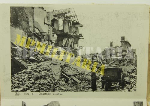 Conjunto de dez cartões postais de 1940 II Guerra da cidade belga de Oostende do Flandres toda destruída por bombardeamento.