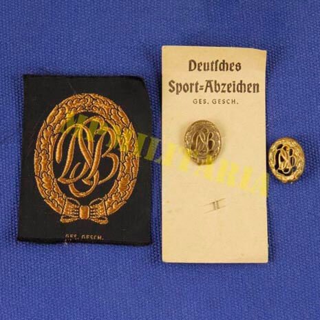 Lote de duas miniaturas de badges e patch de esporte da Alemanha da Deutsches Sportabzeichen “DSB”, anos 50/60.