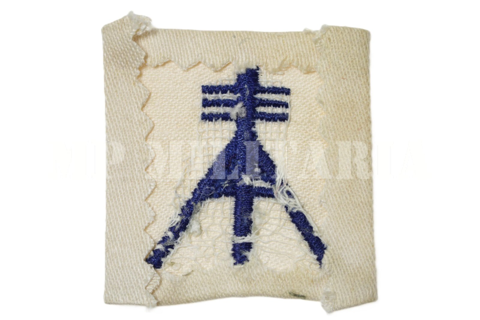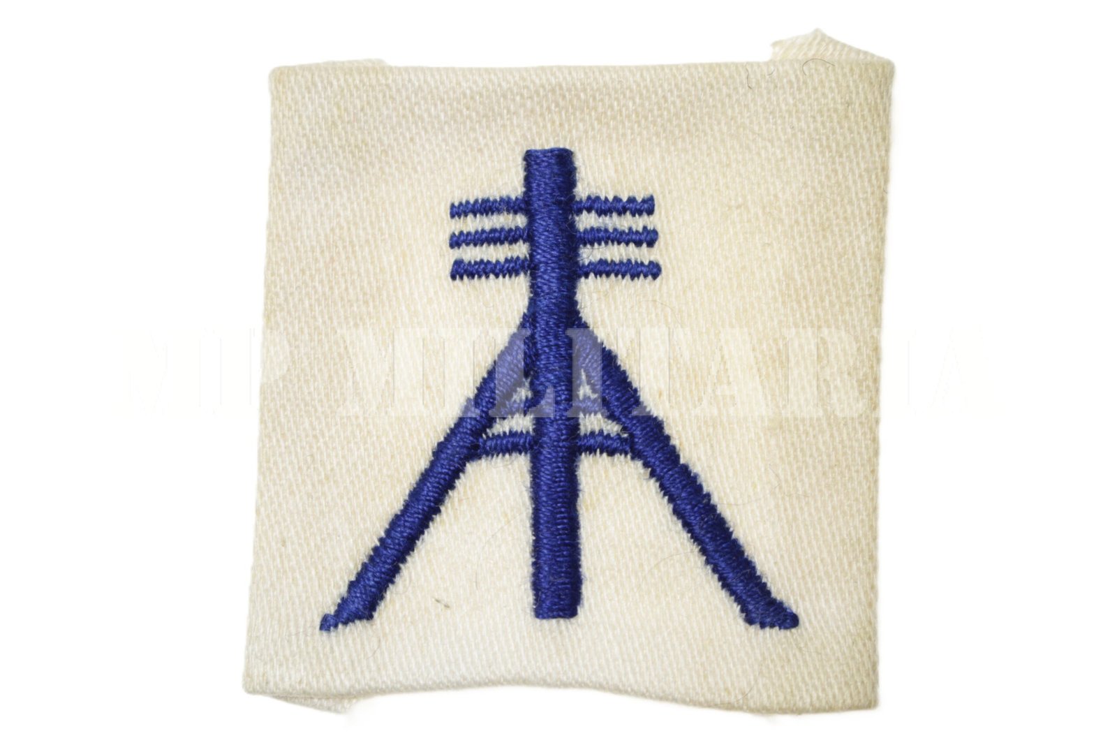 Distintivo de Hidrografia e Navegação – HN, do Quadro Técnico da Marinha do Brasil, representada por um sinal geodésico com as pernas laterais formando um ângulo de 30º com a perna centrada;