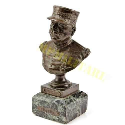 Escultura de bronze do Marechal Joffre (Joseph Jacques Césaire Joffre 1852 / 1931), comandou o Exército Francês na I Guerra Mundial entre 1914 – 1916, um de seus feitos foi a derrota alemã na primeira batalha de Marne em 1914. A escultura é assinada pelo artista;