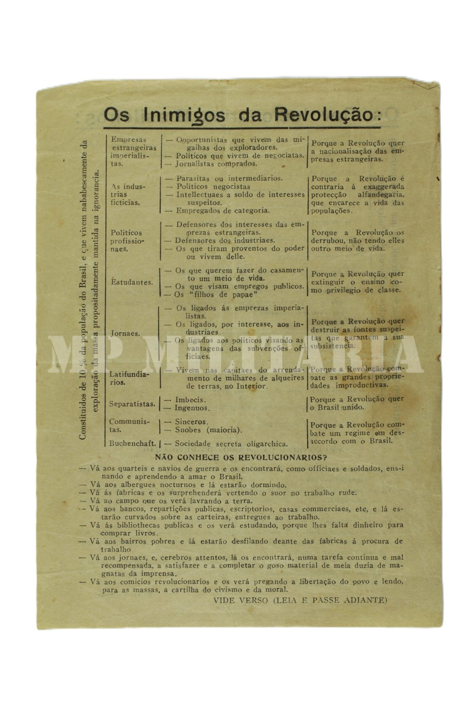 Panfleto “Aos Revolucionários Brasileiros”, pró Revolução de 1930;