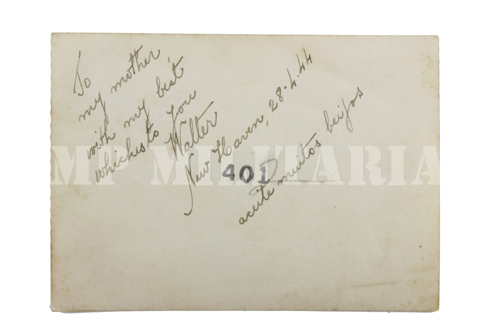 Fotografia de um Oficial da Força Aérea Brasileira – FAB em treinamento nos Estados Unidos em 1943, com dedicatória no verso;