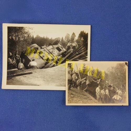 Duas fotografias de resgate de um carro de combate alemão durante a I Guerra Mundial.