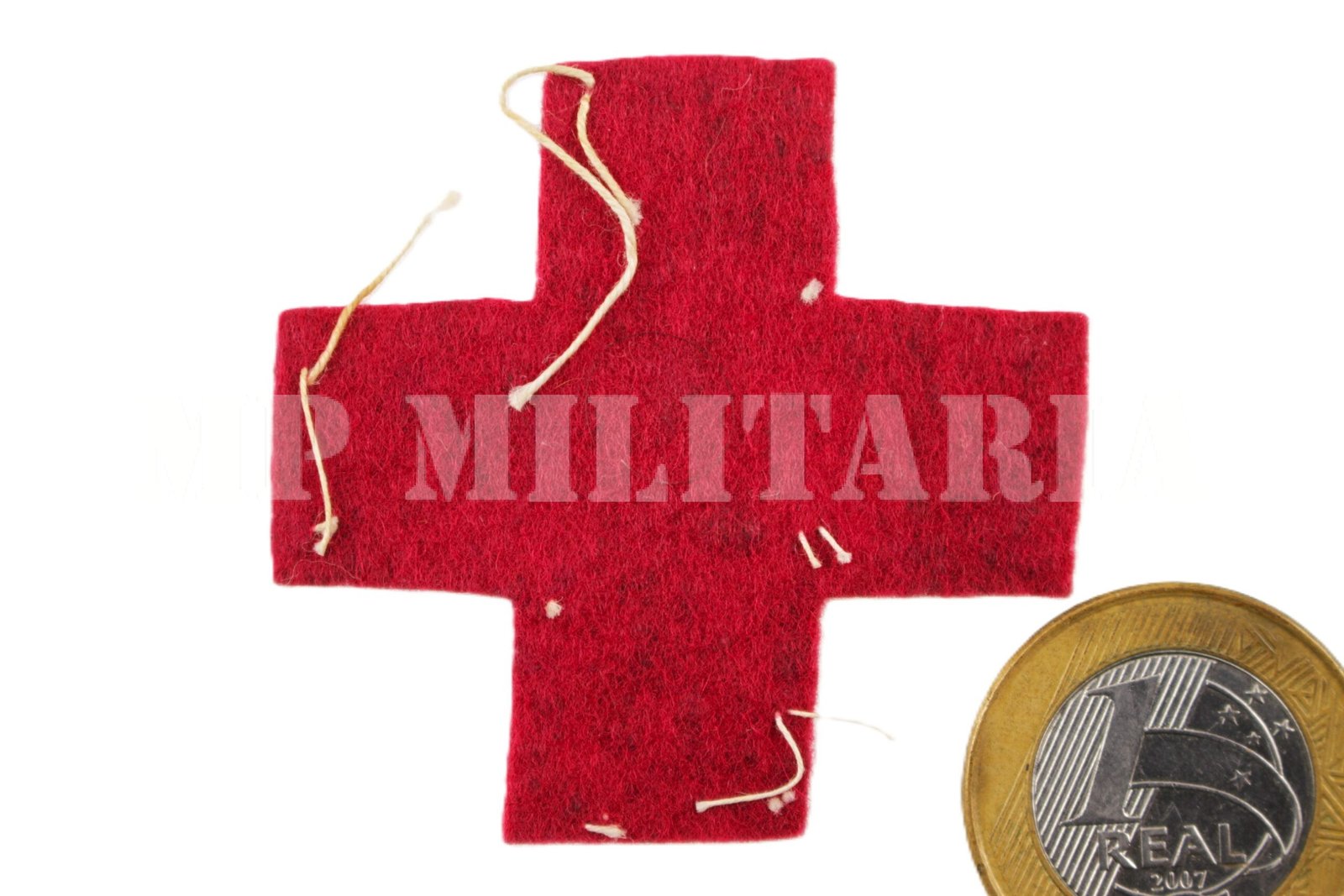 Insígnia Cruz Vermelha, para ser fixada em coberturas de médicos, padioleiros ou enfermeiras, feito durante a Revolução Constitucionalista de 1932;
