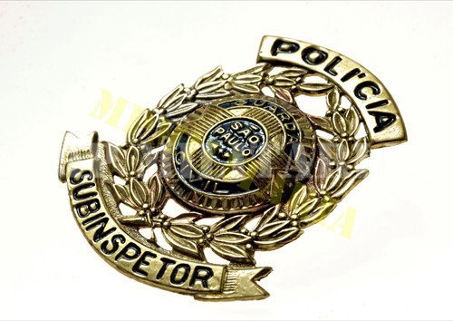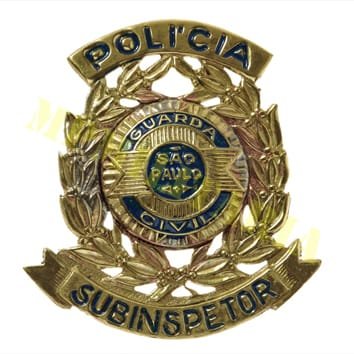 Insígnia da antiga Guarda Civil do Estado de São Paulo de Subinspetor, a Guarda Civil foi criada pela Lei nº 2.141, de 2 de outubro de 1926 e extinta pela Lei nº 217/70 em 1970 e seus membros foram incorporados a atual Polícia Militar do Estado de São Paulo e a Polícia Civil;
