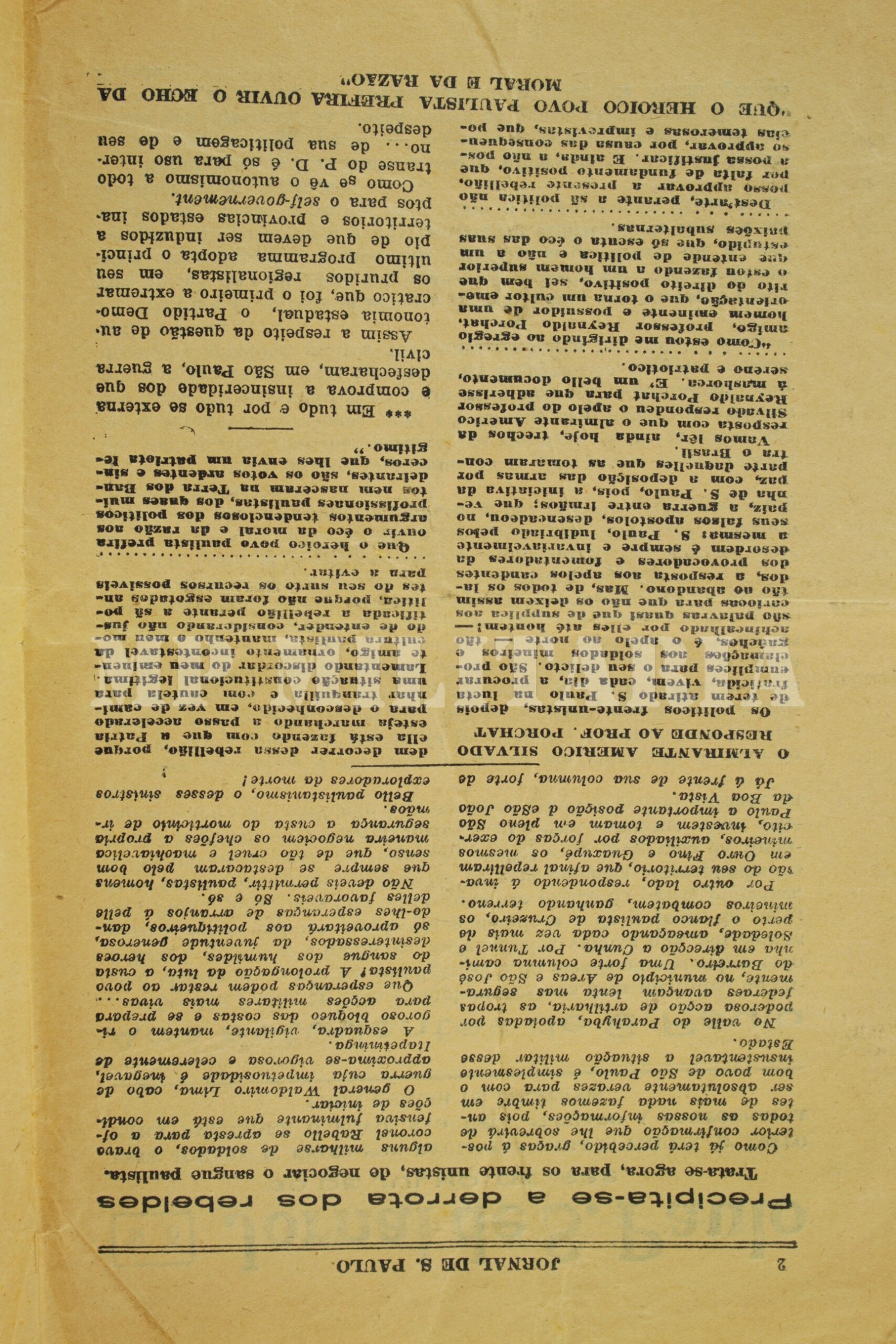JORNAL DE SÃO PAULO DE CONTRAINFORMAÇÃO DO GOVERNO FEDERAL – REVOLUÇÃO DE 1932