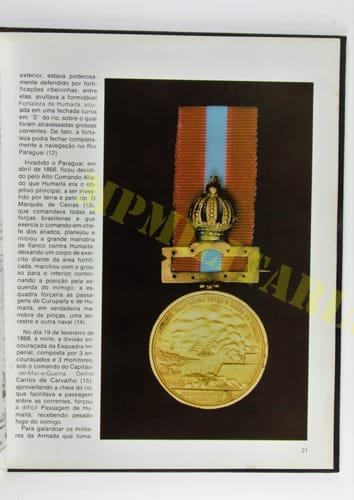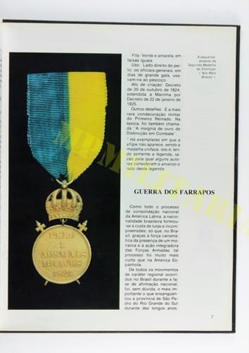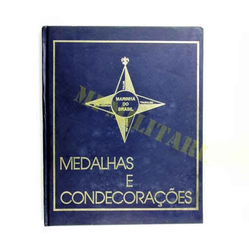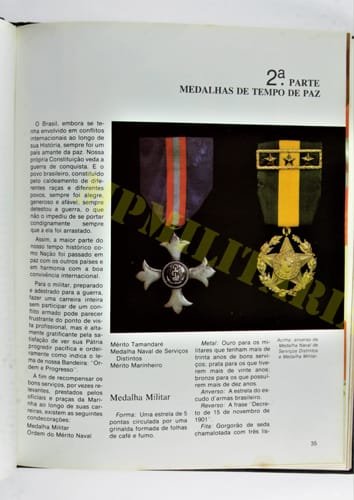 Livro da Marinha do Brasil “Medalhas e Condecorações”, com imagens e históricos das medalhas militares brasileiras da campanha de Cisplatina, Farrapos, Campanha do Uruguai, Guerra do Paraguai, I e II Guerra entre outras.