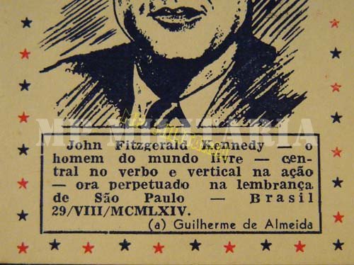 Lote de 2 Envelopes com Flâmulas filatélicas “Inauguração do Monumento a John Fitzgerald Kennedy”, com verso de Guilherme de Almeida de 29 de agosto de 1964.