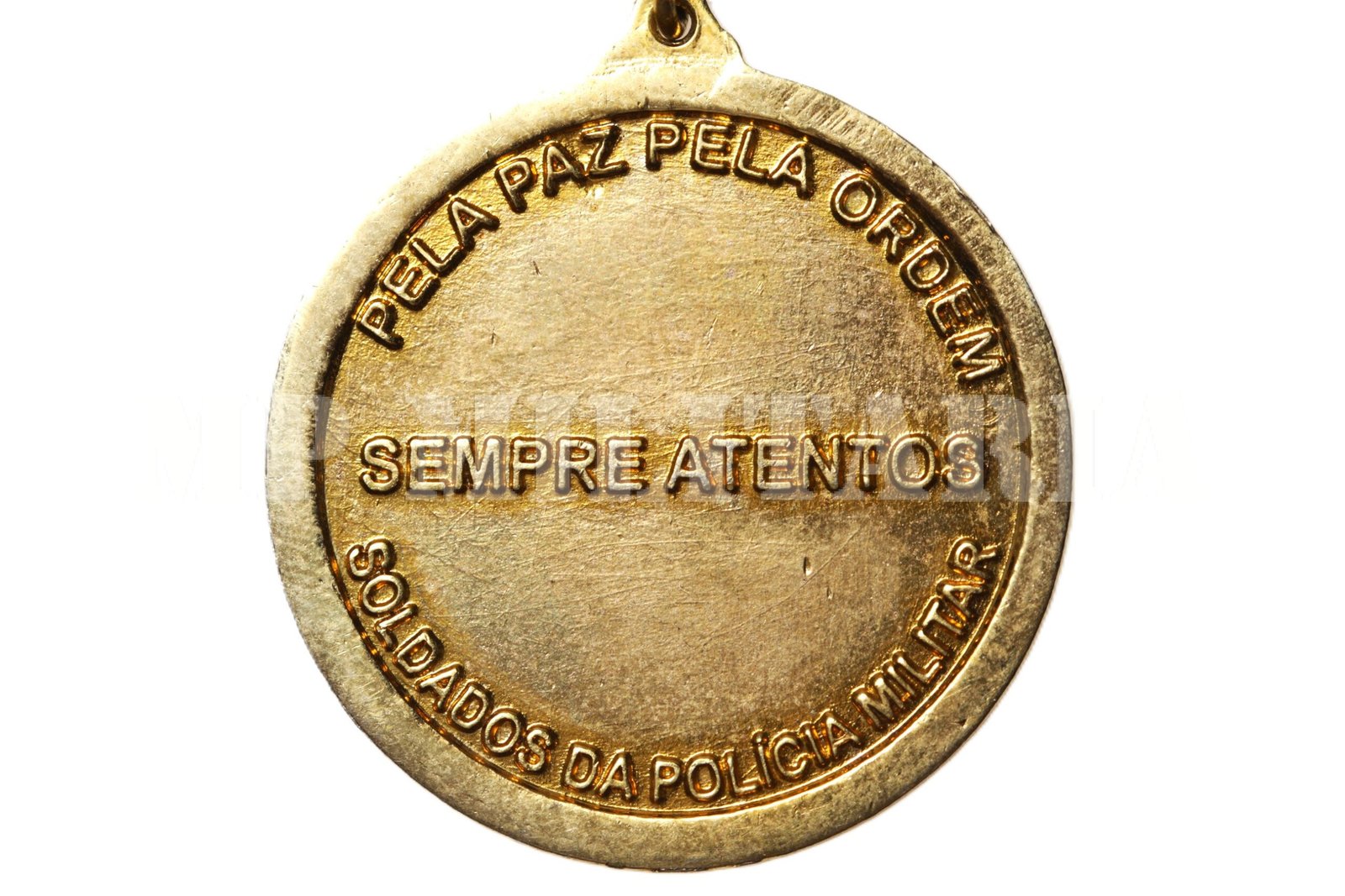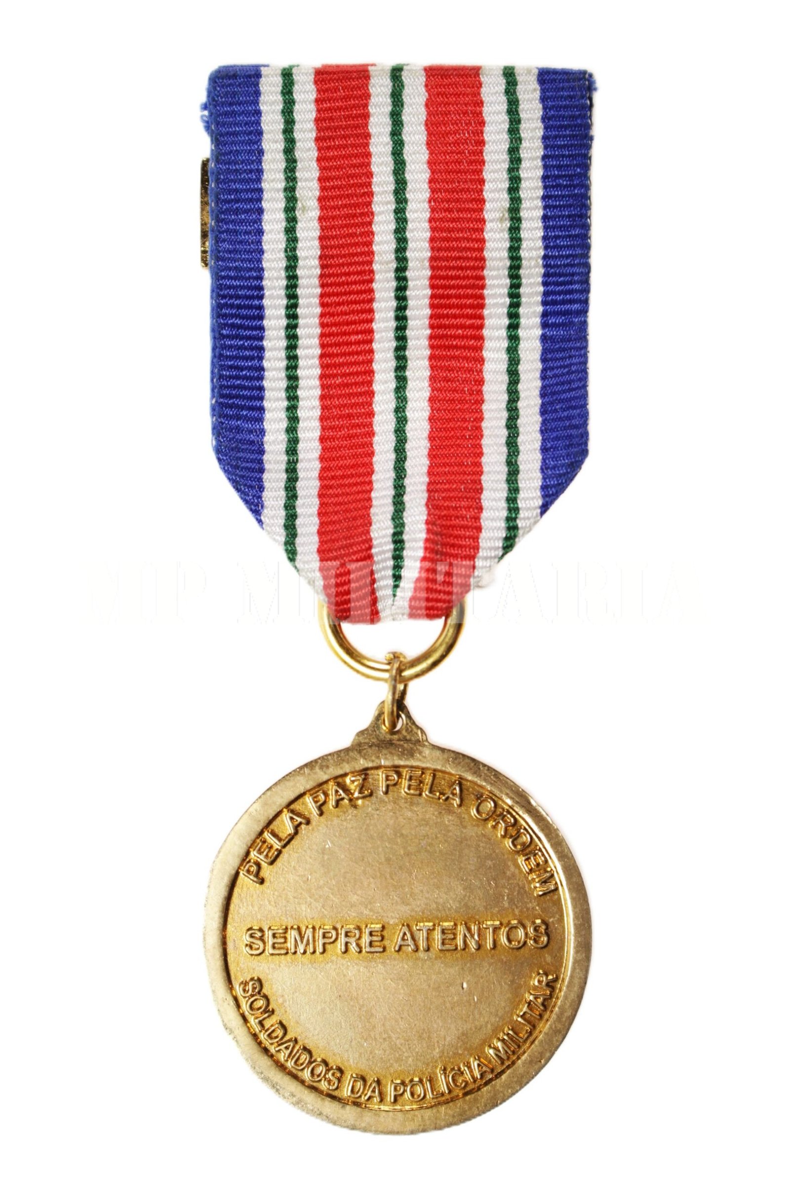 Medalha 180 anos da Polícia Militar do Estado do Amazonas 1837 – 2017, apresenta no reverso a inscrição “Pela Paz, pela ordem – Sempre atentos – Soldados da Polícia”;