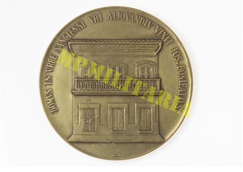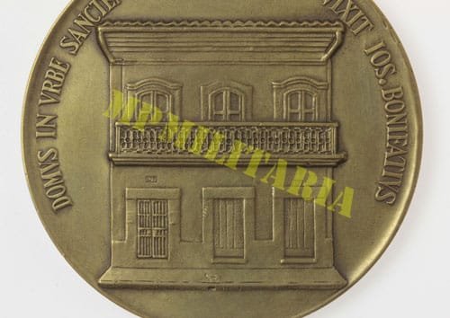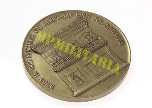Medalha de 200 anos do nascimento do Patriarca da Independência José Bonifácio de Andrada e Silva (*1763†1838), apresenta no reverso a imagem da casa onde nasceu na cidade de Santos estado de São Paulo. Módulo maior.