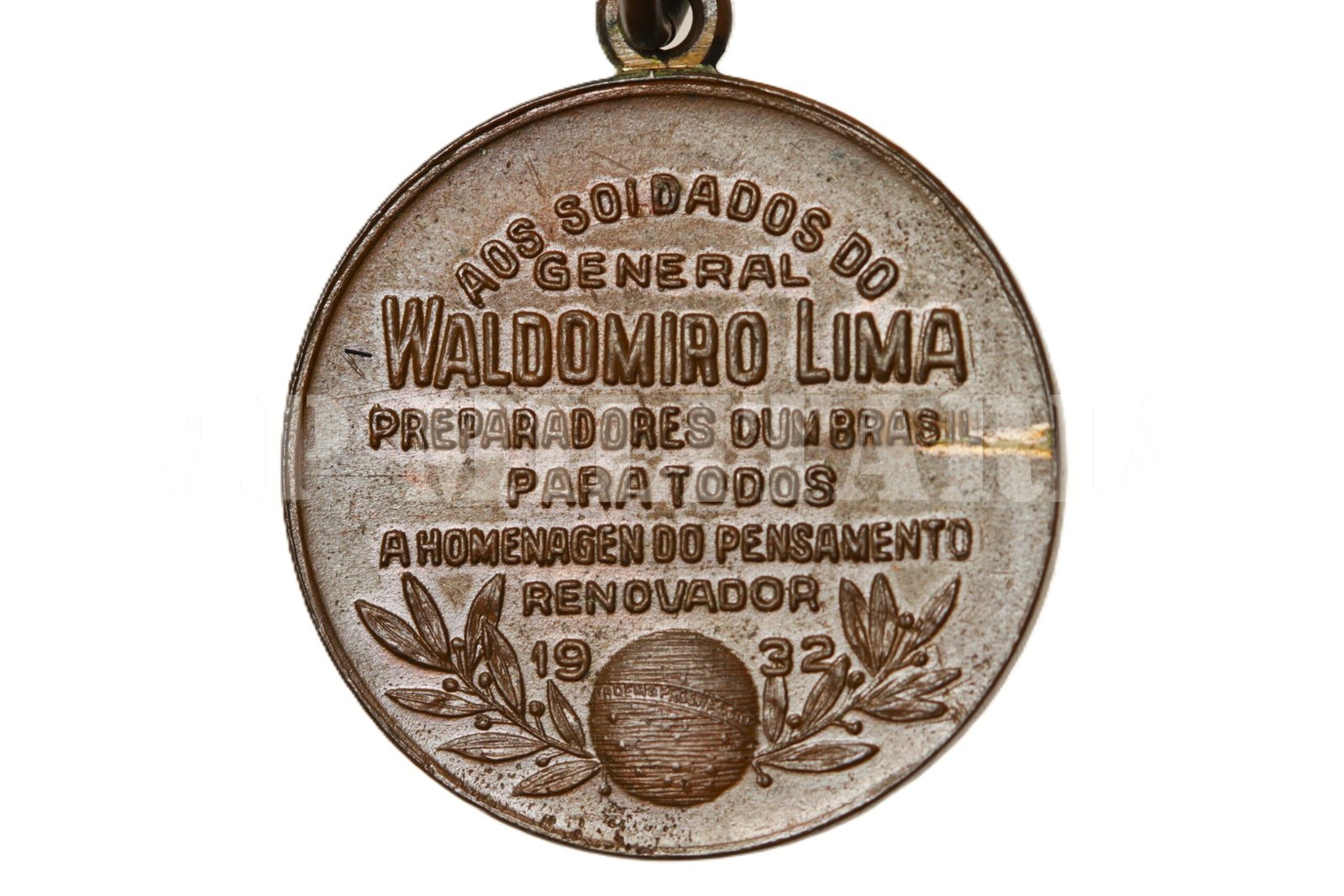 No campo a inscrição “Aos Soldados do General Waldomiro Lima Preparadores dum Brasil para todos – A Homenagem do Pensamento Renovador 1932”;