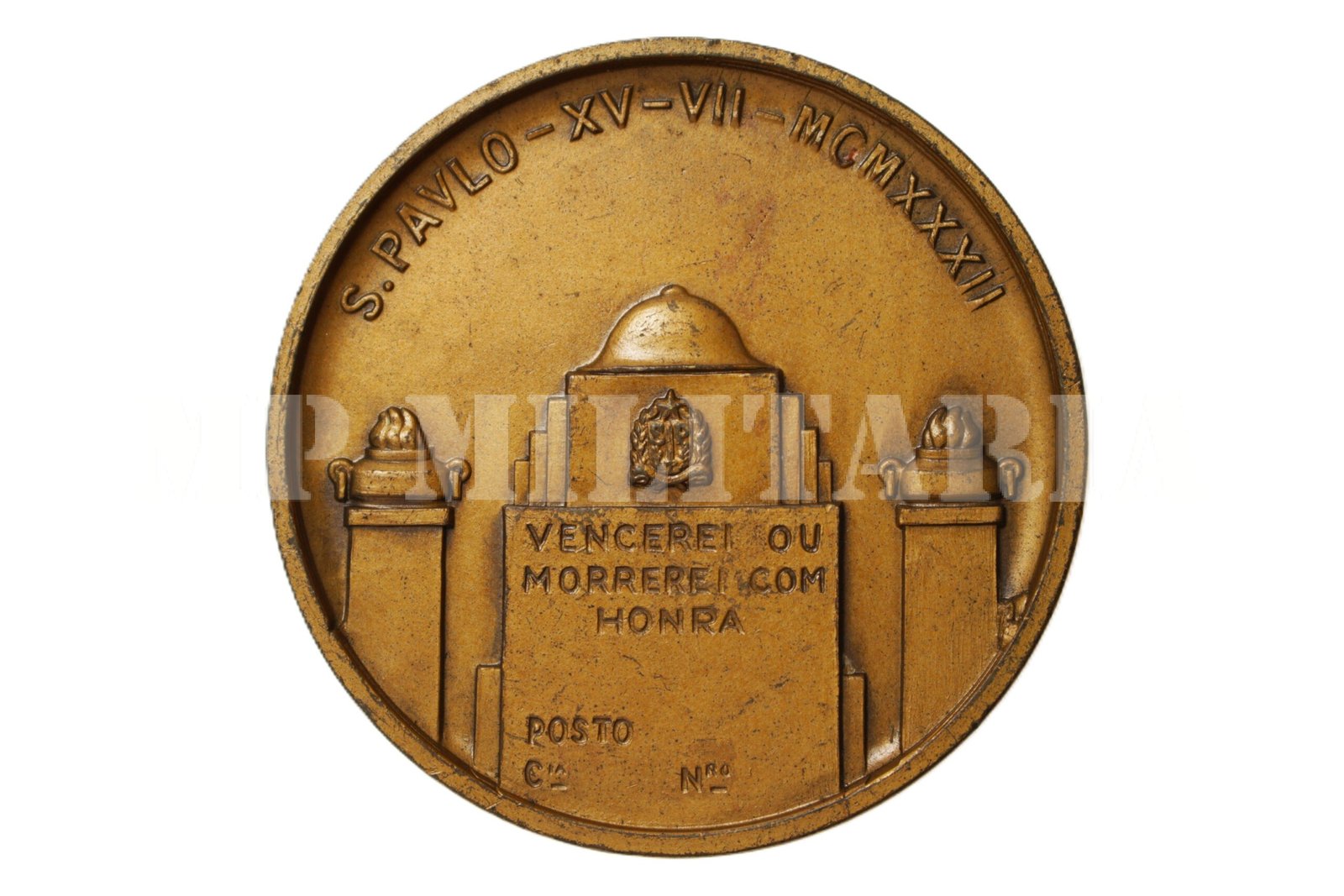 No campo entre piras, o capacete paulista sobre o brasão de São Paulo e a inscrição “VENCEREI OU MORREREI COM HONRA” e espaço para gravar os dados do militar acima a inscrição “S. Paulo – XV-VII-MCMXXXII”;