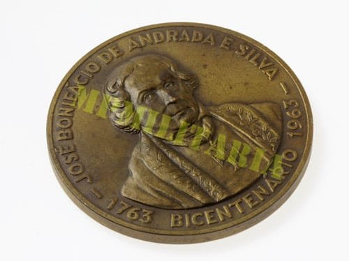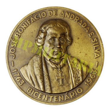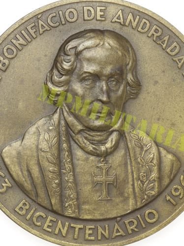 Medalha comemorativa do bicentenário do Patriarca da Independência José Bonifácio de Andrada e Silva (*1763 †1838) homenagem da cidade de Santos. Em bronze.