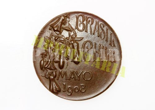 Medalha do Chile em homenagem a visita da marinha brasileira com o Cruzador Almirante Barroso ao Chile em maio de 1903, apresenta a imagem da silhueta do cruzador;