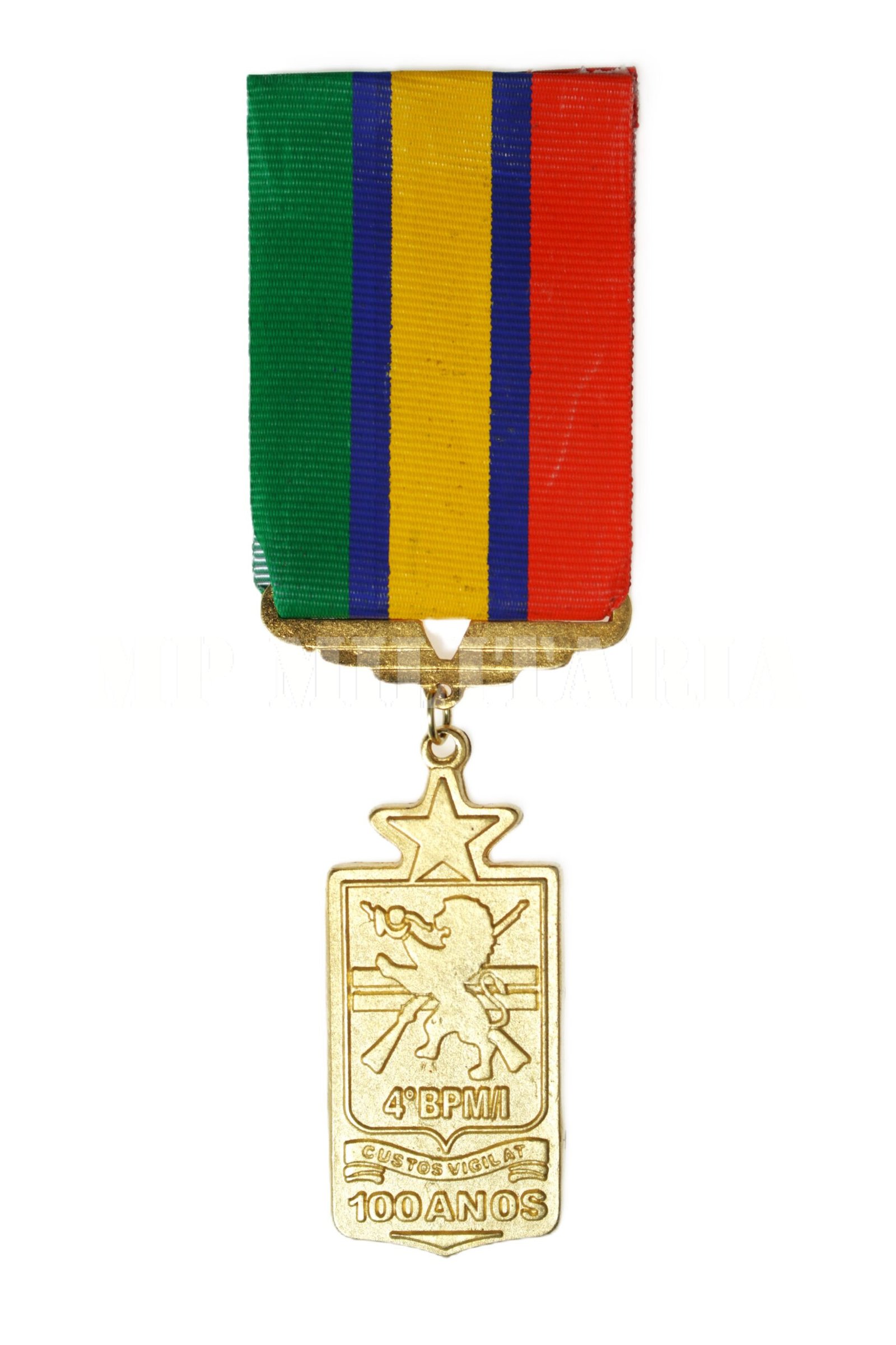 Medalha Centenário do 4º BPM/I (Batalhão de Polícia Militar do Interior), 1901 – 2001, da Polícia Militar do Estado de São Paulo, sediado na cidade de Bauru. Criada pelo Decreto Estadual nº 46059 de 27 de agosto de 2001, para comemorar o centenário da unidade;
