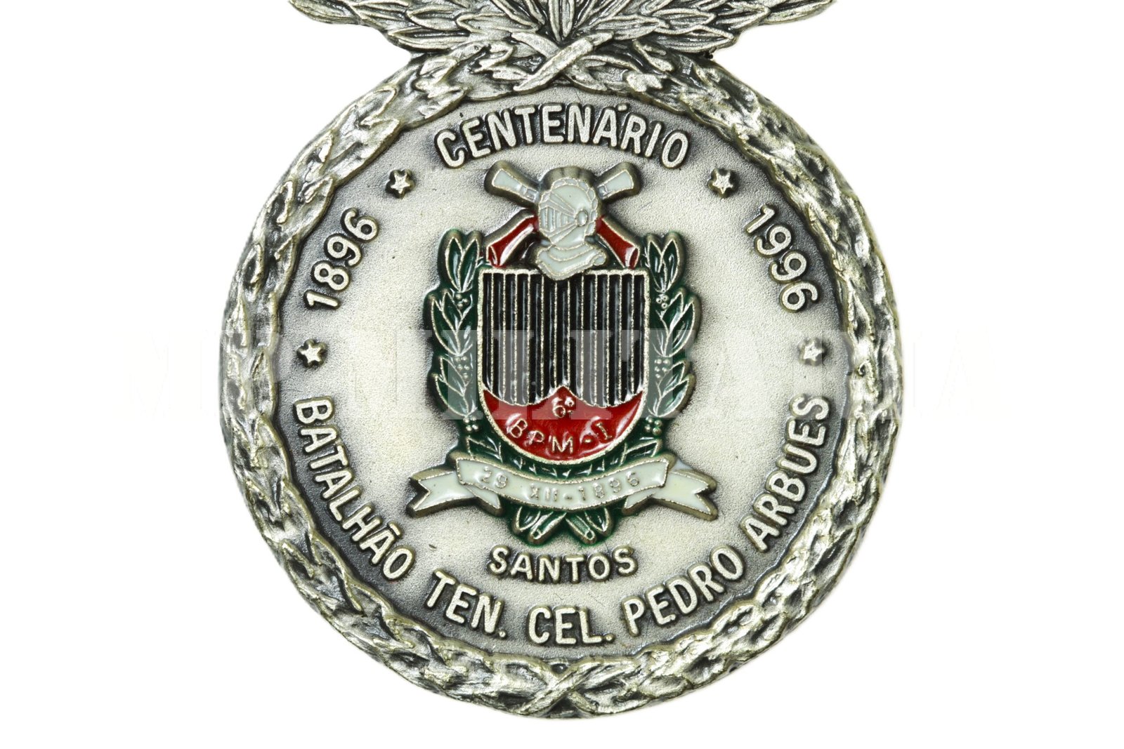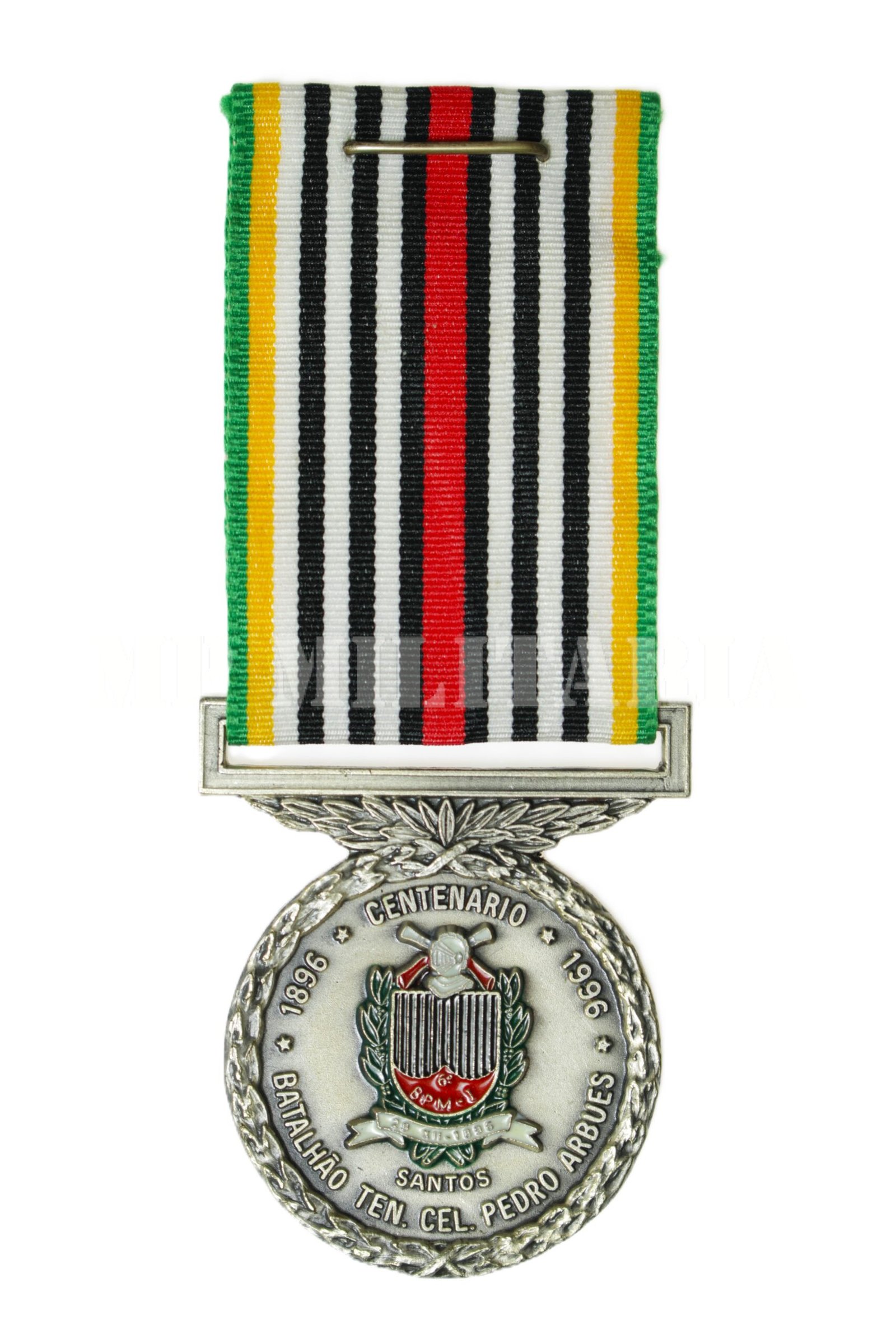 Medalha Centenário do 6º BPM/I (Batalhão de Polícia Militar do Interior) Cel Pedro Arbues, 1896 – 1996, da Polícia Militar do Estado de São Paulo, sediado na cidade de Santos. Criada pelo Decreto Estadual nº 41496 de 26 de dezembro de 1996, para comemorar o centenário da unidade;