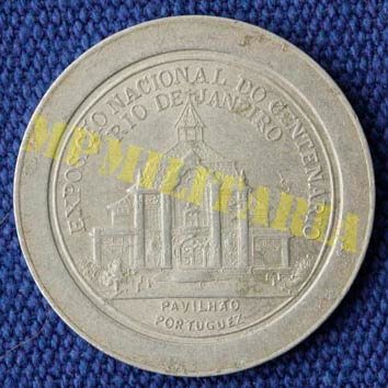 Medalha de 1922 comemorativa do I Centenário da Independência, “Pavilhão Português”, cunhada na ocasião da Exposição Nacional do Rio de Janeiro, é uma série de 6 medalhas com o mesmo anverso e os reversos diferentes.