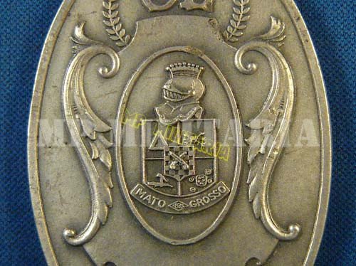 Anverso: O brasão da policia do Mato Grosso e acima entre louros a sigla “CL”.
