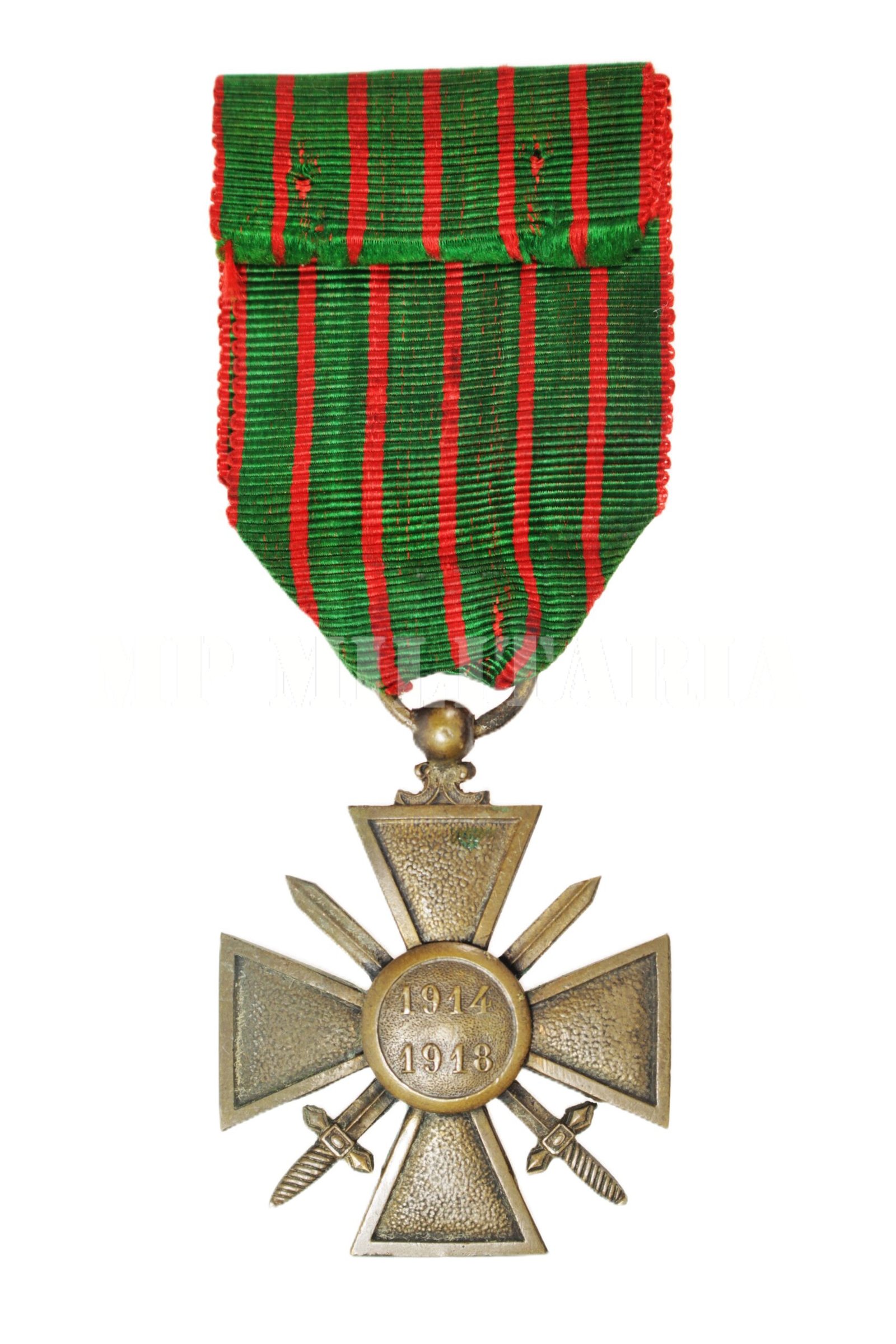 Medalha Croix de Guerre de 1914 – 1918, criada em 8 de abril de 1915 e concedida a militares que receberam pelo menos uma citação por feitos individuais;