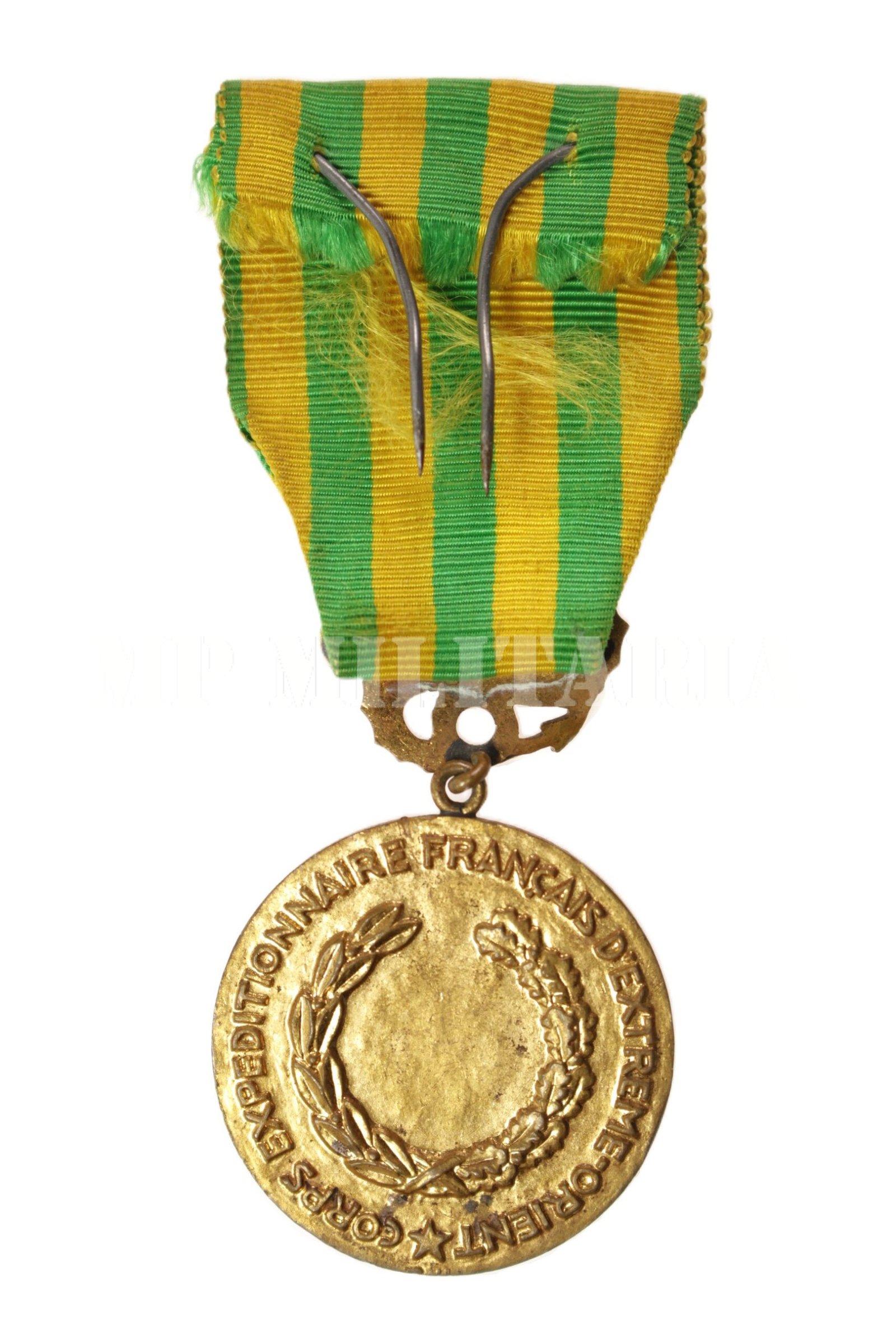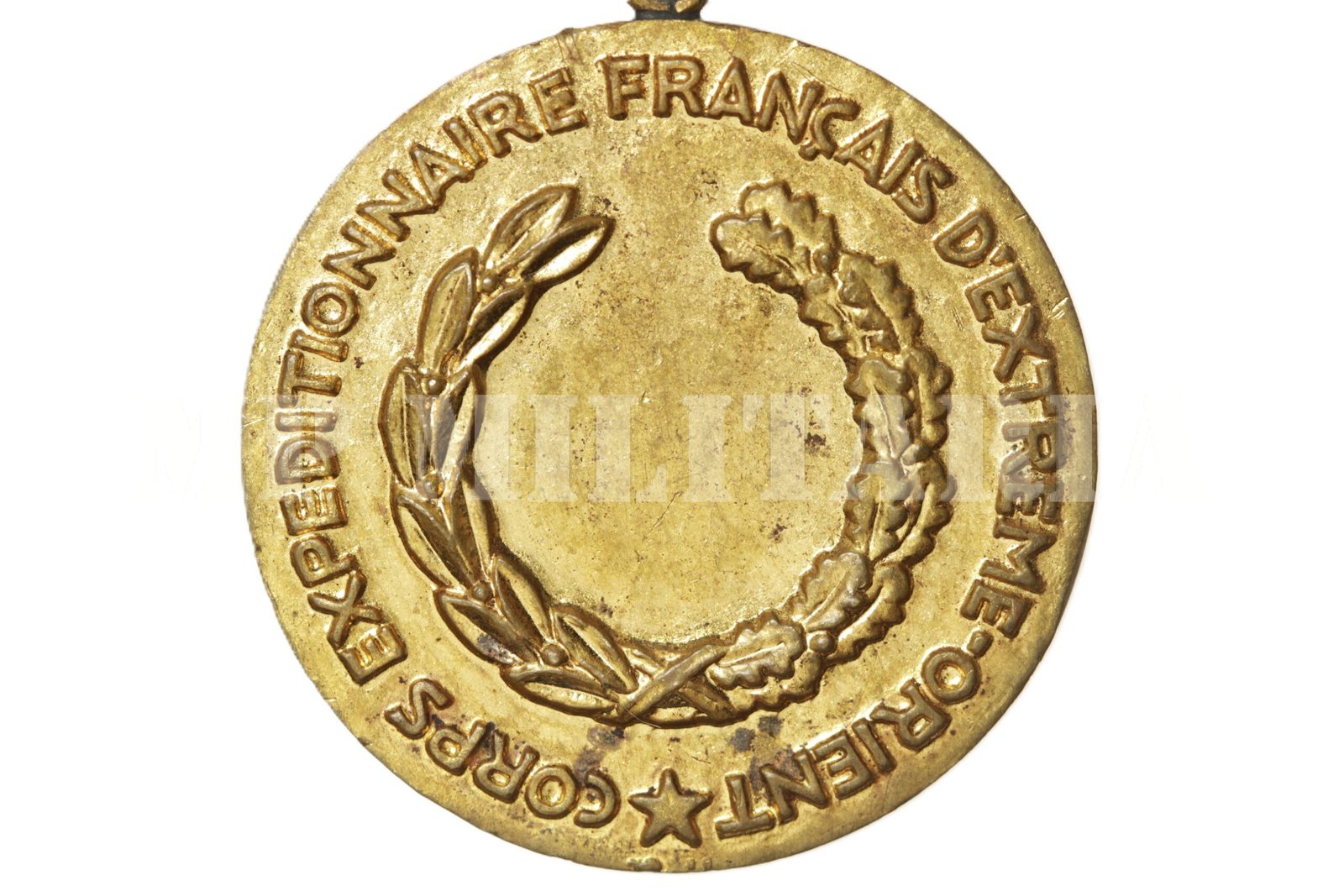 No campo uma coroa de carvalho e louros, na orla as inscrições “Corps Expeditionnaire Francais D´Extreme-Orient” e no exergo uma cornucópia e as iniciais “BR”;