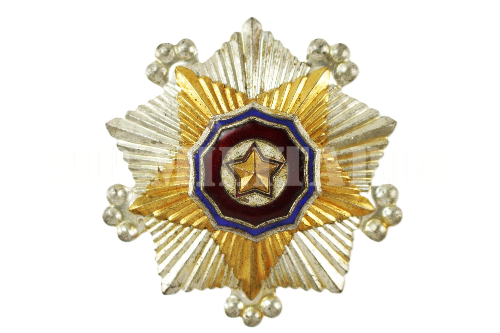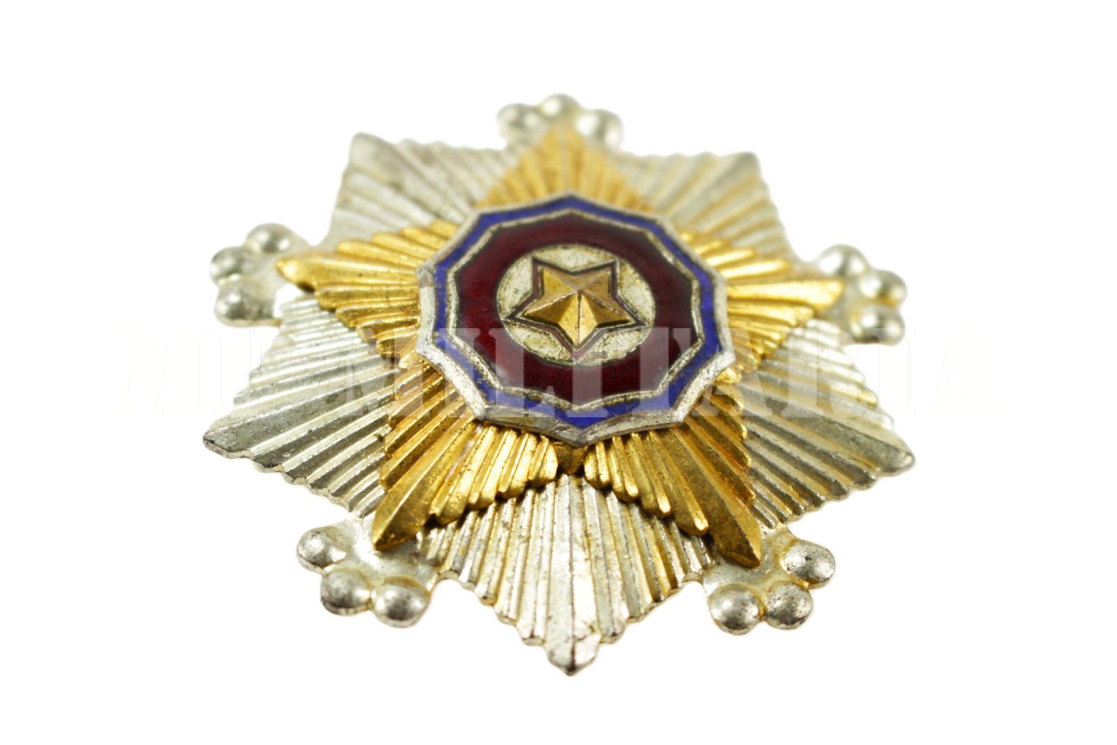 Medalha placa da norte coreana Ordem Nacional da Bandeira 2ª classe 국기훈장 제2급, instituída em 2 de outubro de 1948 e concedida por mérito excepcional aos militares, políticos e civis, é uma das principais ordens da Coréia do Norte;