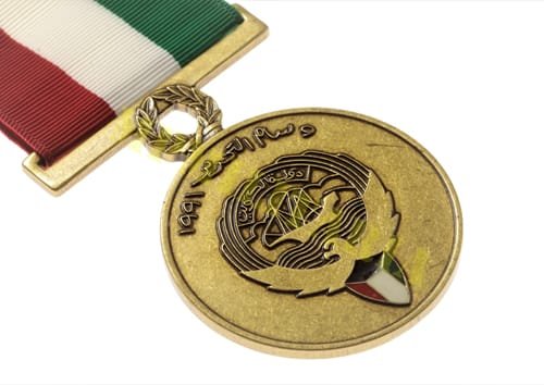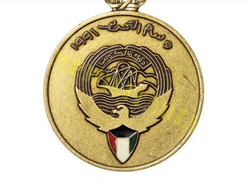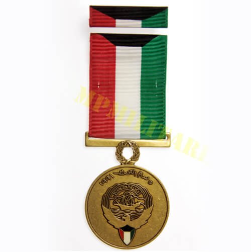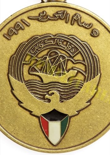 Medalha da Libertação do Kuwait 1991 “١٩٩١ – وسام التحرير”, instituída em 16 de julho de 1994 e concedida a militares que participaram na guerra de libertação do Kuwait (Guerra do Golfo / Operação Tempestade no Deserto 1990 / 91) da ocupação iraquiana;