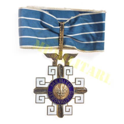 Medalha da Ordem do Mérito Aeronáutico grau Grande Oficial, modelo de fabricação antiga apresenta ainda com a Inscrição “República dos Estados Unidos do Brasil”. Criada pelo Decreto lei nº 5961 de 1 de novembro de 1943, e concedida à militares da Aeronáutica que tenham prestado serviços notáveis ao país ou hajam distinguido no exercício de sua função. É concedida também a outras armas, civis e estrangeiros;