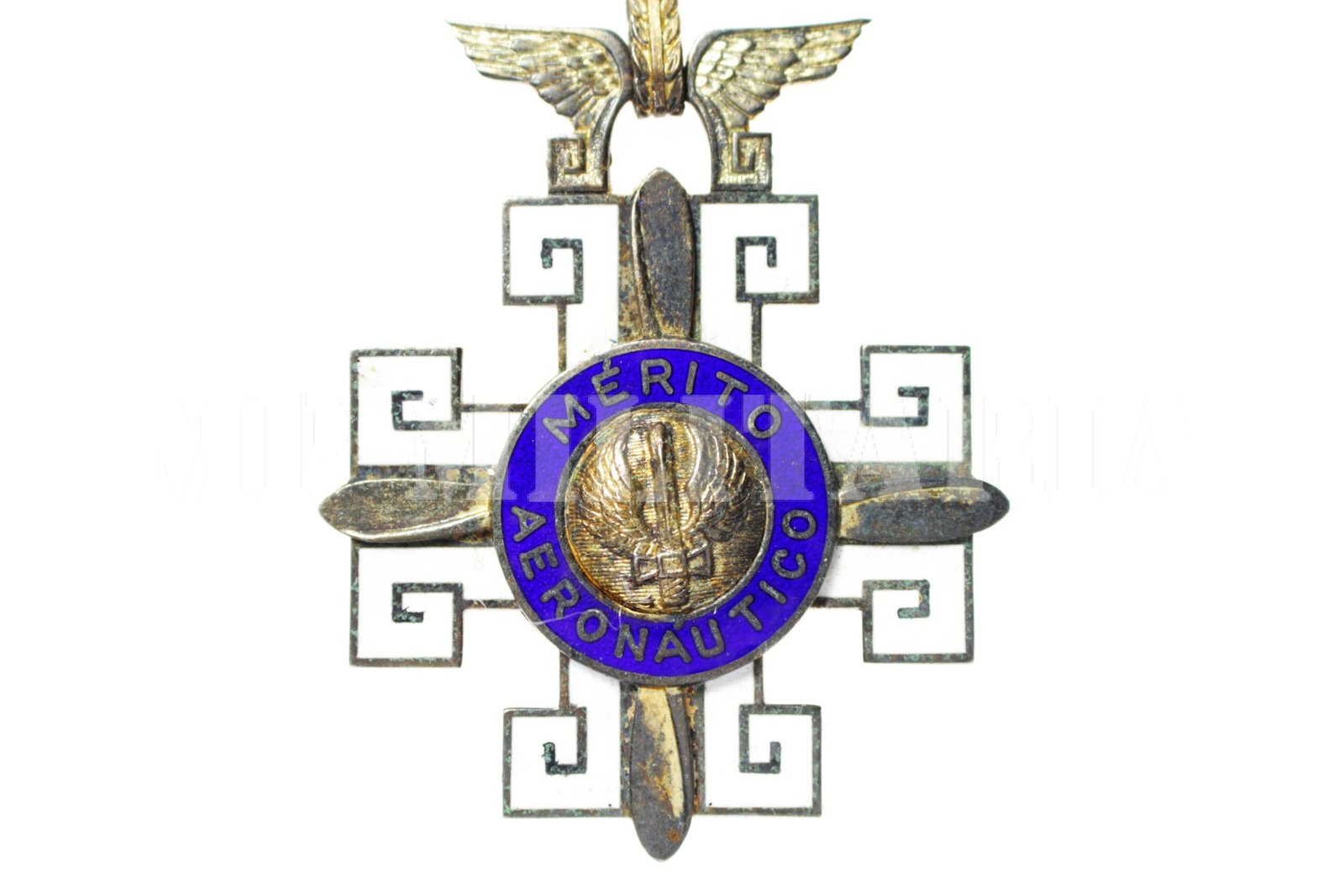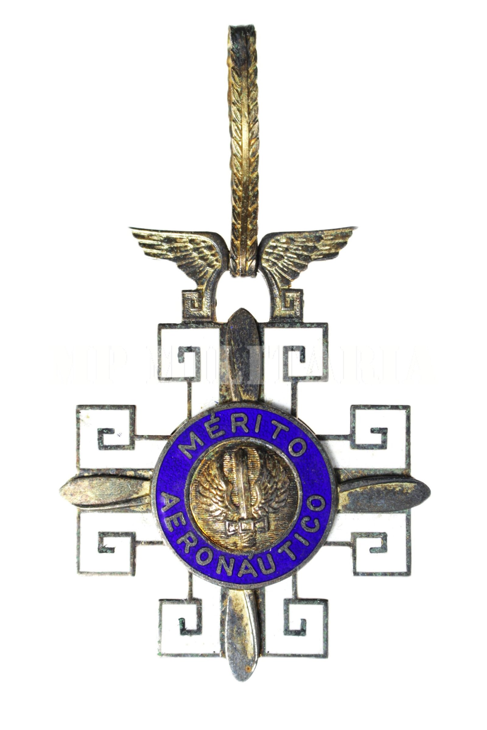 Medalha da Ordem do Mérito Aeronáutico do grau Comendador / Grande oficial. Criada pelo Decreto lei nº 5961 de 1 de novembro de 1943, e concedida à militares da Aeronáutica que tenham prestado serviços notáveis ao país ou hajam distinguido no exercício de sua função. É concedida também a outras armas, civis e estrangeiros;