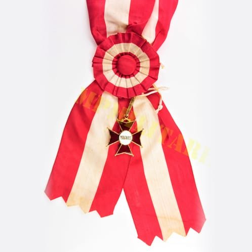 Em metal dourado e esmaltado e fita de seda;