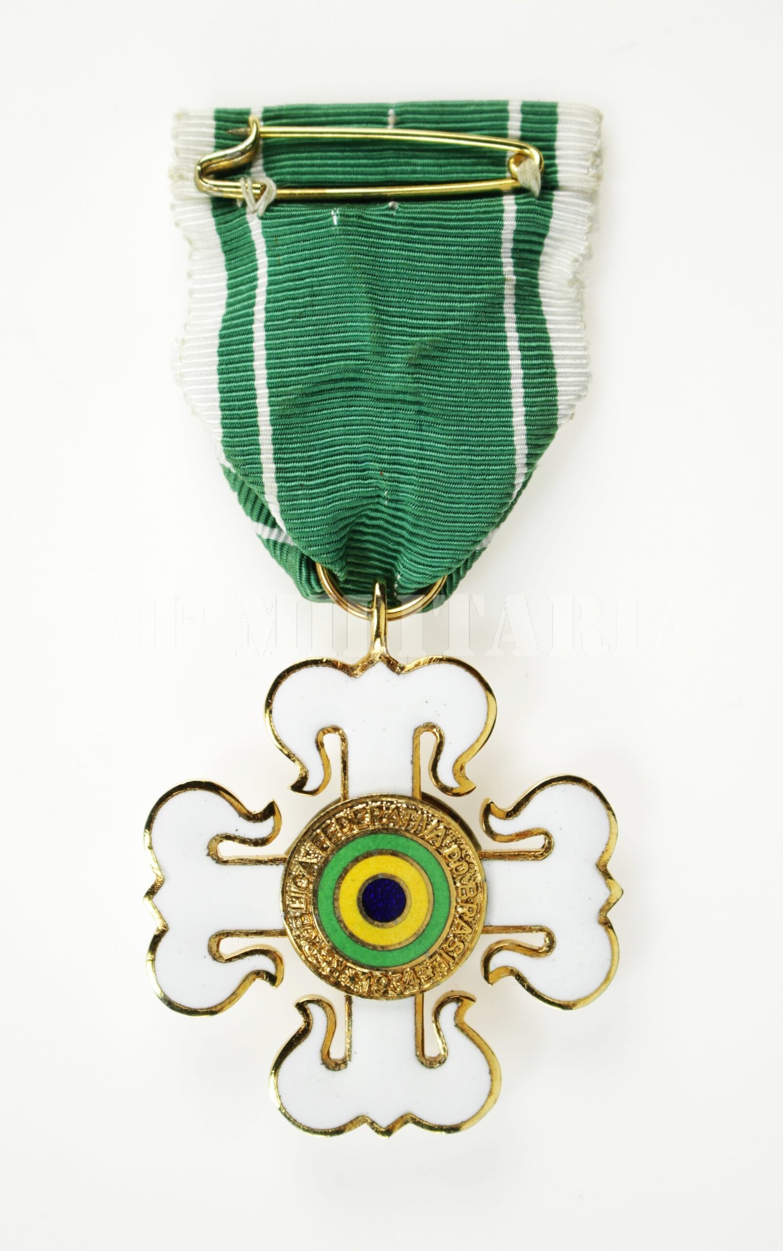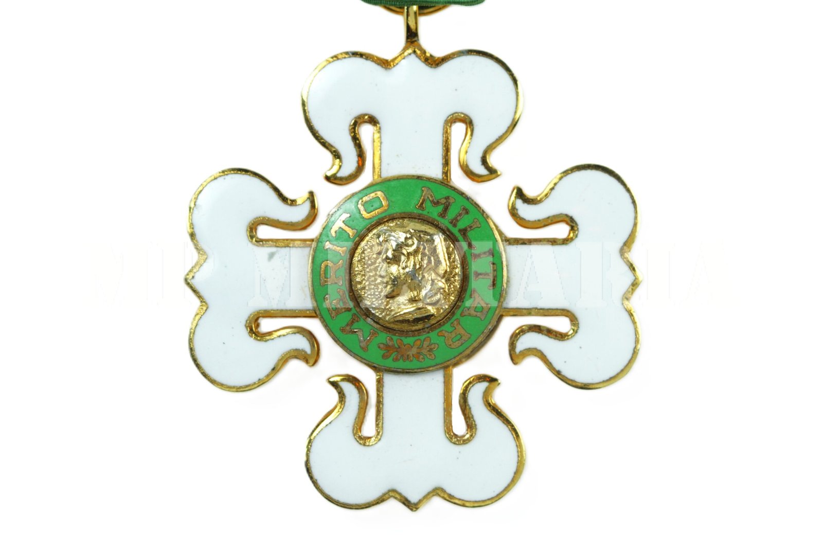 Medalha da Ordem do Mérito Militar grau Oficial, com barreta e roseta. Instituída pelo Decreto lei nº 24660 de 11 de junho de 1934 e concedida à militares do Exército que tenham prestado serviços notáveis ao país ou hajam distinguido no exercício de sua função. É concedida também a outras armas, civis e estrangeiros; A medalha tem a forma da Cruz de Aviz com os quatro braços iguais.;