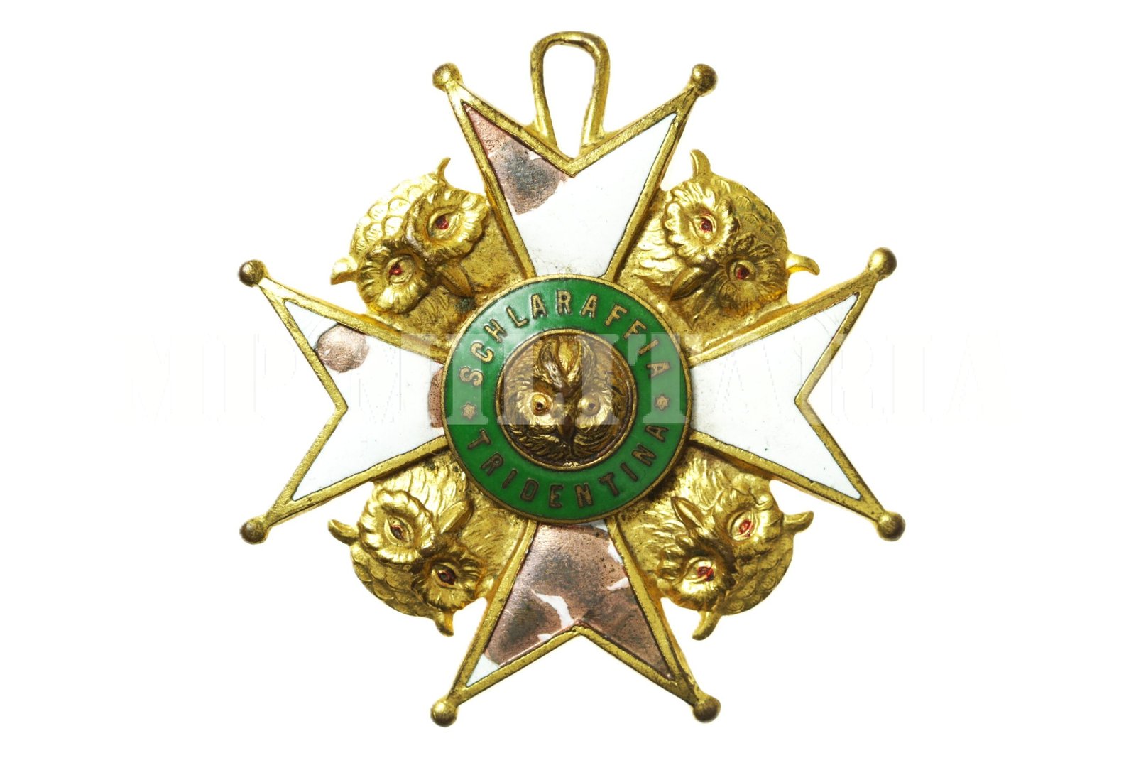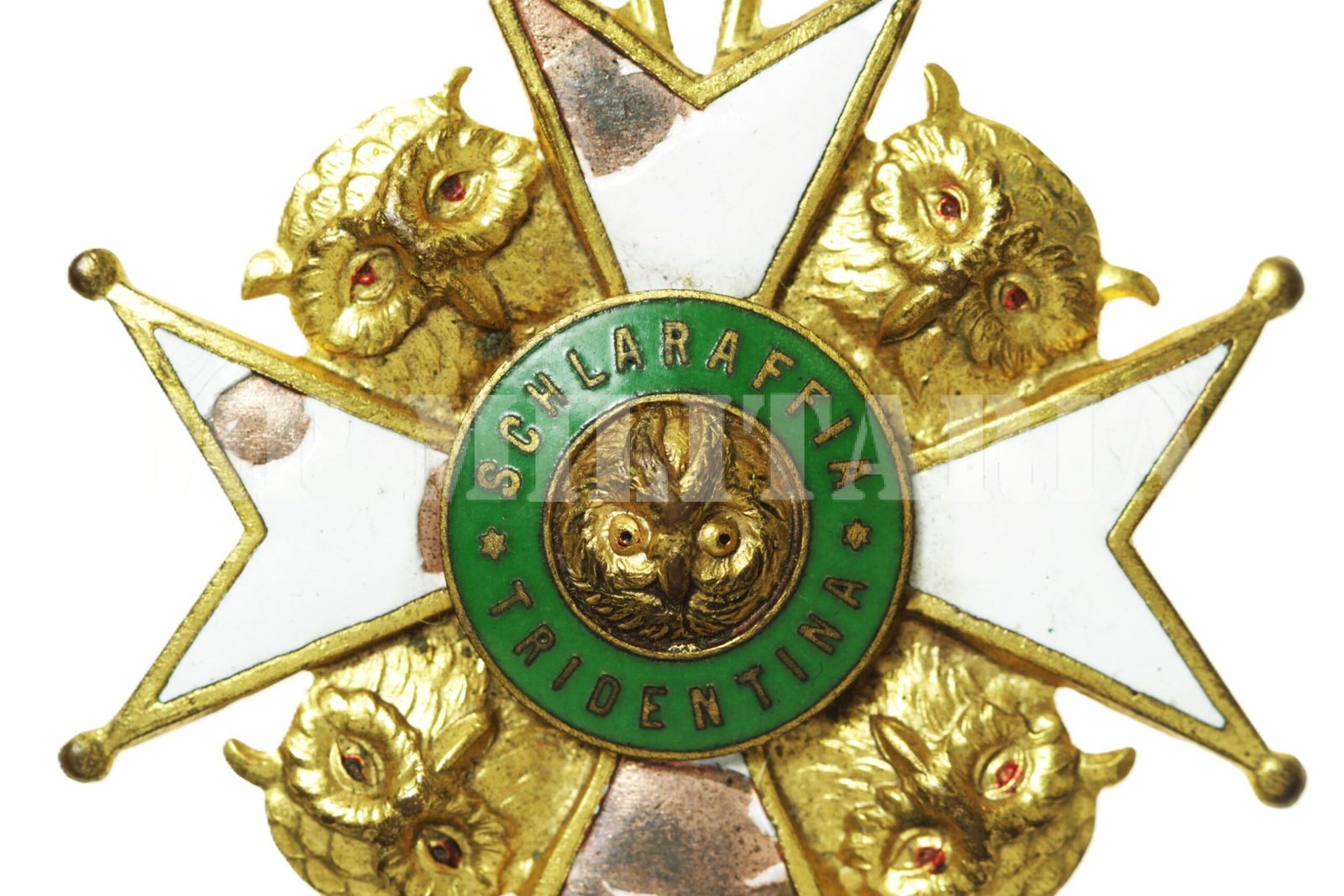 Medalha da Ordem Schlaraffia Tridentina, grau comendador. A Schlaraffia é uma sociedade mundial de língua alemã fundada em Praga (então Império Austríaco) em 1859, “Grazia” é o nome do castelo ou local de encontro específico (conhecido como “Sippung”) para essa ordem em particular, que está localizada na Áustria, em uma cidade chamada Kapaunburg;
