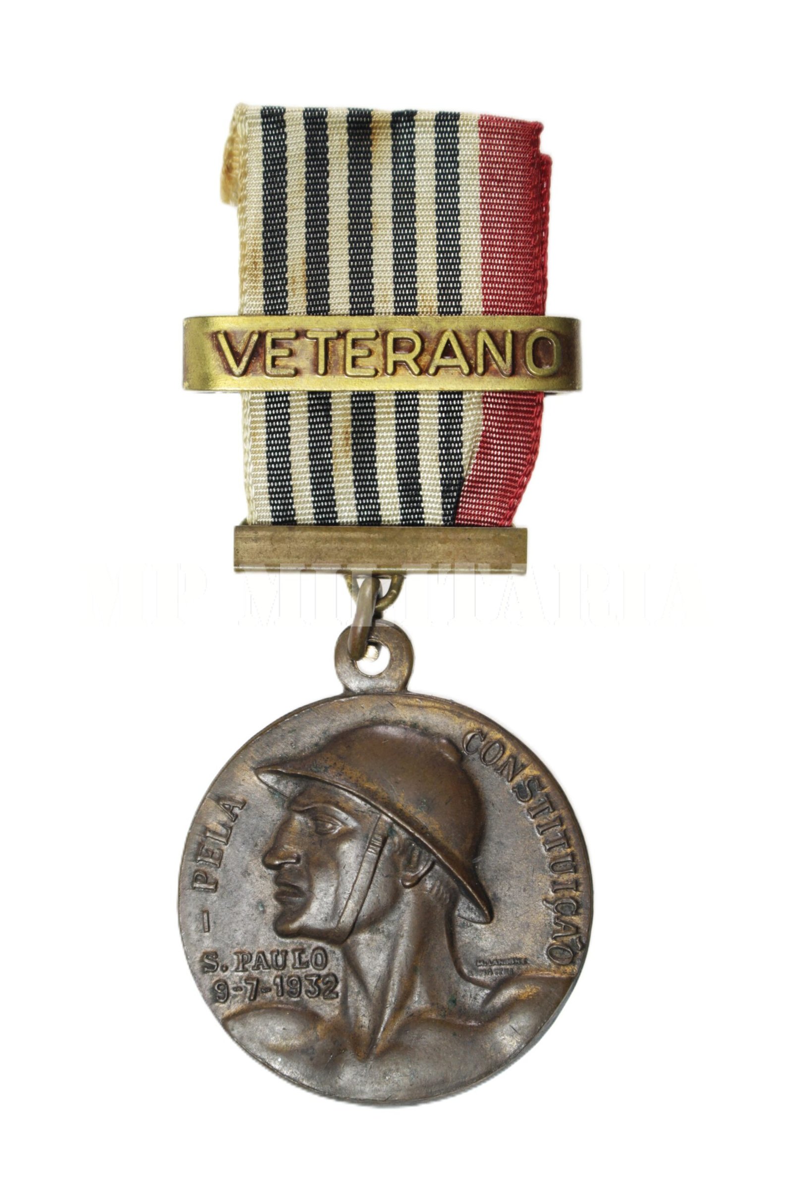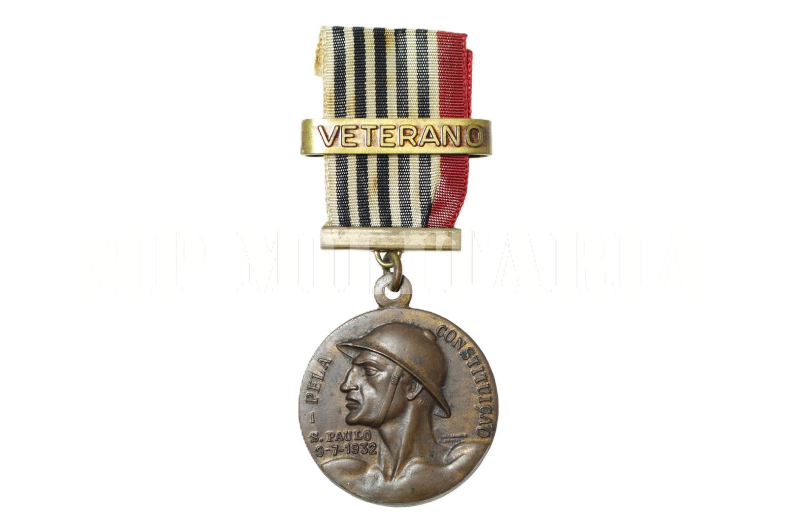 A mais conhecida medalha da Revolução de 1932 “Pela Constituição – São Paulo é o Direito a Força” com fita e passador “Veterano”. Esta medalha foi cunhada durante a Revolução Constitucionalista de 1932;