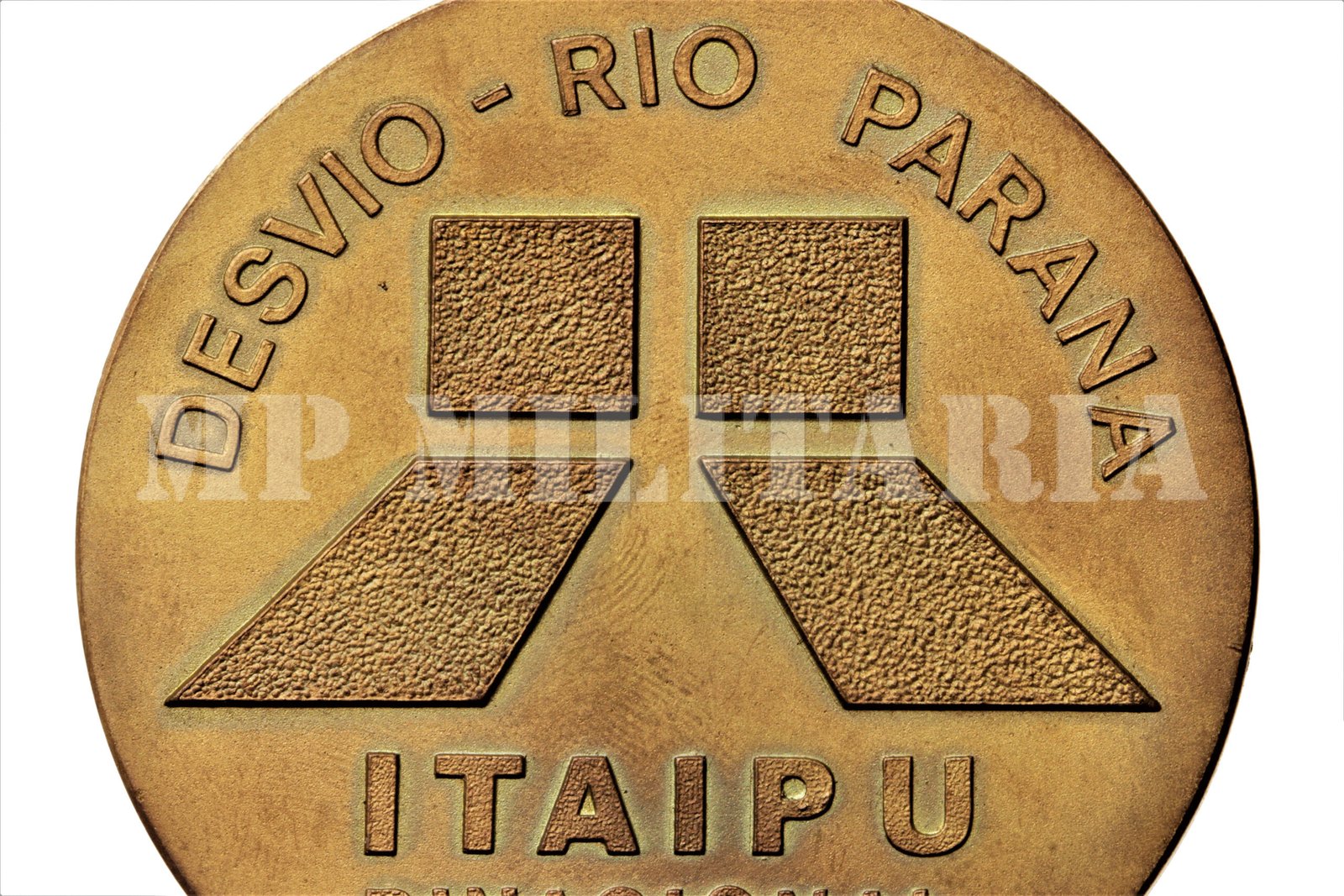 Medalha da Usina Hidrelétrica ITAIPU Binacional que comemora o desvio do Rio Paraná em 1978;