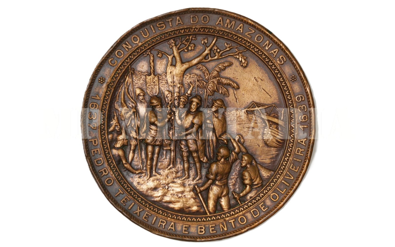 Medalha de 1900 de homenagem do estado do Pará que comemora o 4º Centenário do Descobrimento do Brasil, Comemora a expedição de Gonçalo Pisarro, Napo, Amazonas e Juruá;