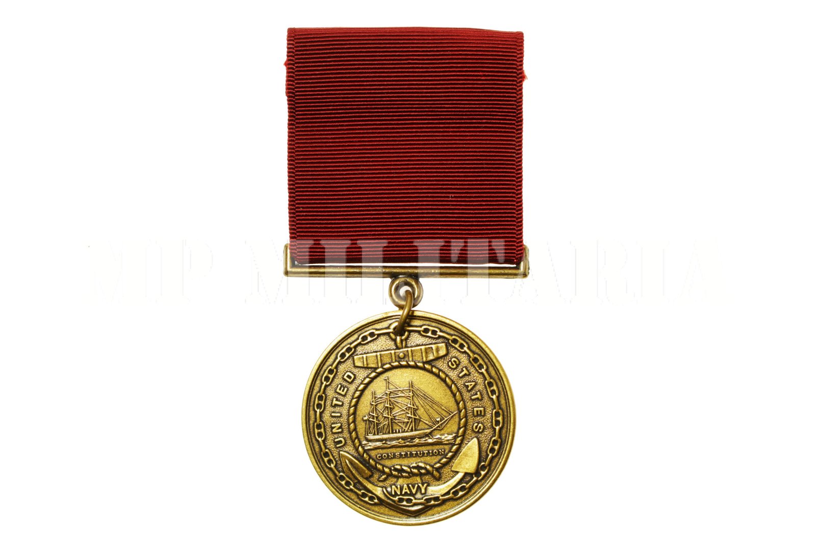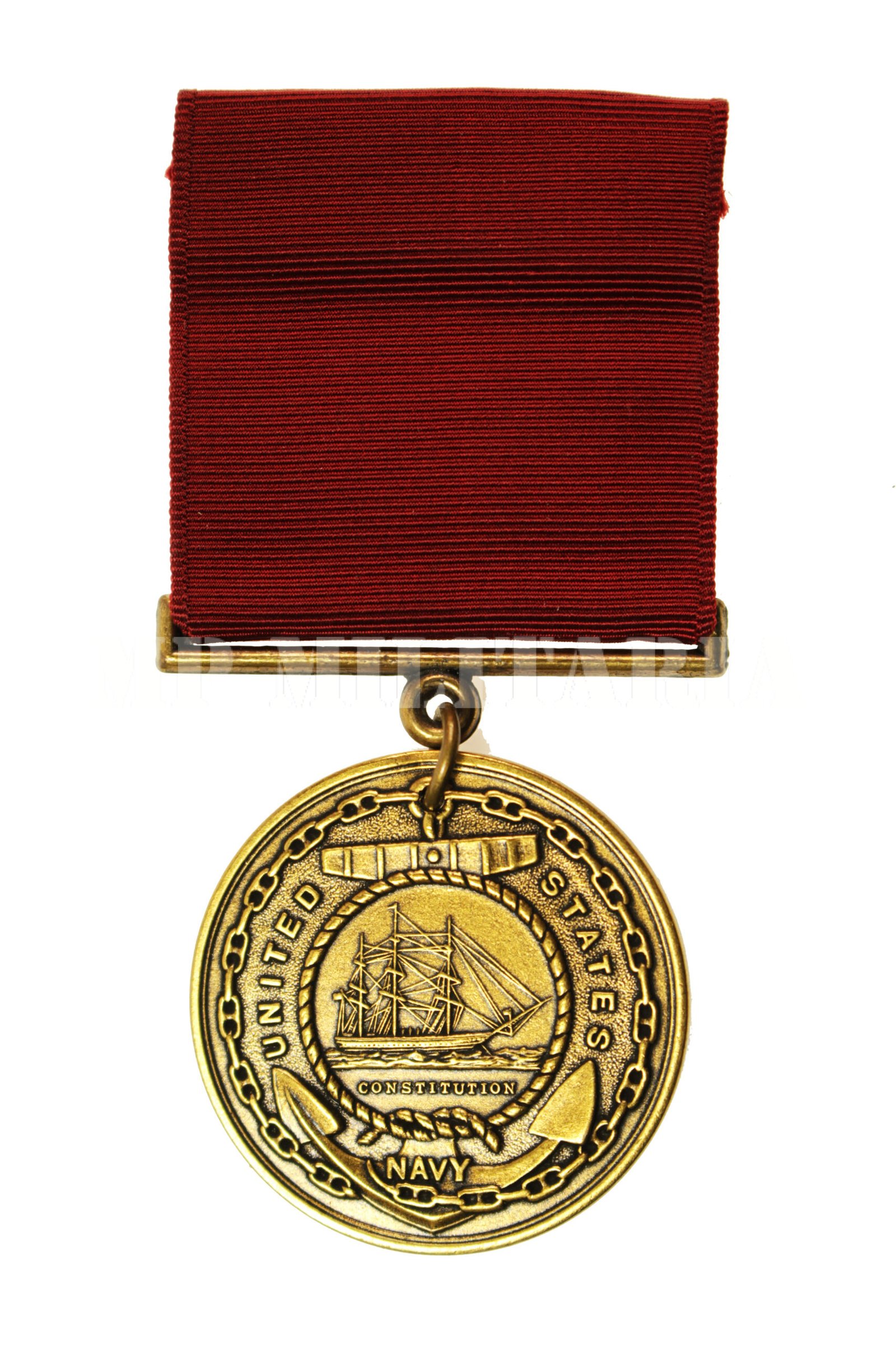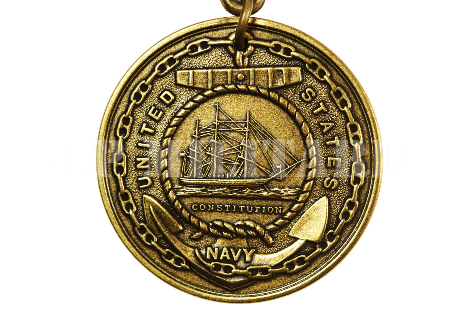 Medalha de Boa Conduta da Marinha Americana “Navy Good Conduct Medal” modelo padrão da II Guerra Mundial, instituída em 21 de novembro de 1884. A medalha é concedida aos militares da Marinha dos Estados Unidos (United States Navy) por serviços honrosos, desempenho profissional, comportamento militar, liderança, boa conduta e por período de três anos de serviço ativo contínuo;